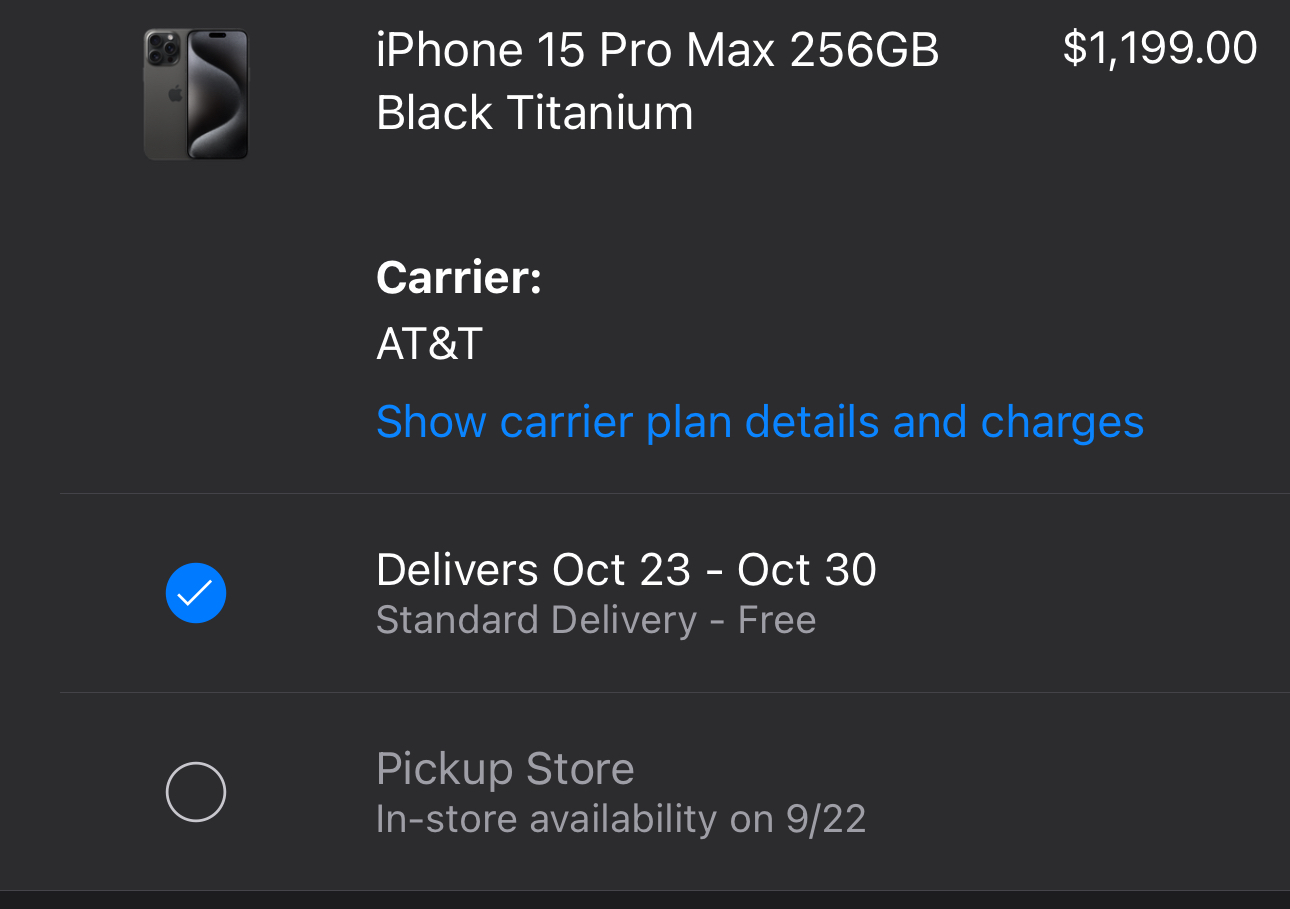 Guess I will try to nap (2:30am here now) and try to check in to attempt to beat my Oct 9 preorder for a 256gb Nat Tit PM.