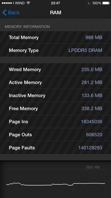 Unlike traditional desktop OSes, iOS doesn’t support paging to disk (or in this case, NAND). Application data can either reside in memory or the associated process is terminated and has to be reloaded the next time you request it. It’s a decision likely made to both maintain user experience and limit the number of program/erase cycles on the internal NAND.