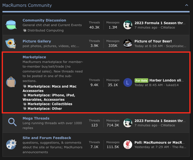 @jeffmr4:MacRumors does have a Marketplace where users can buy and sell items, however IIRC for security reasons and to prevent scams, you have to have 250 posts or more to gain access to it, which is equal to the "MacRumors 6502" user title.