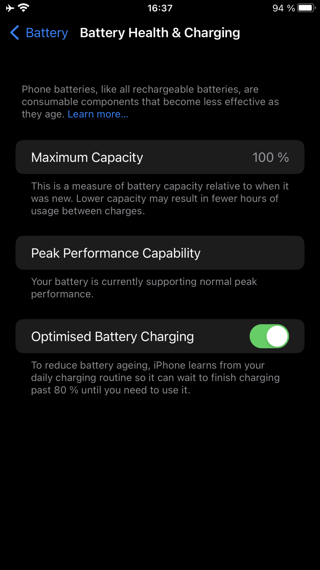 Using the parking lot analogy (you can find a parking space quickly when the lot is half full vs having a difficult time finding an empty spot when it is 95%) - I heard that charging a battery from 80-100% stresses the battery the same amount as when you charge 0-80%. In other words, that last 20% top off to 100 takes the same amount of time and energy as the first 80%.