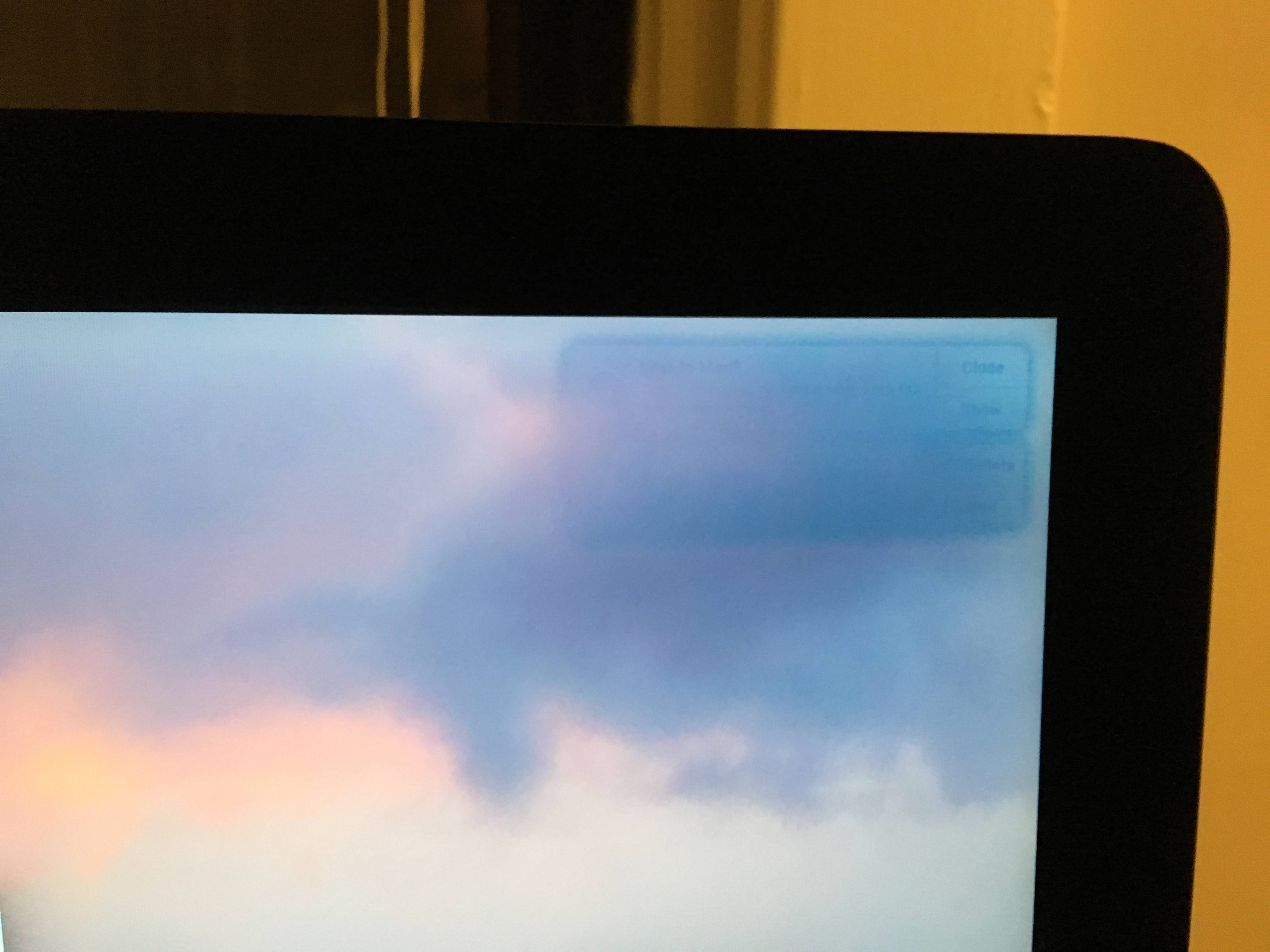 I've noticed that against some backgrounds (grey/white, principally) you can sometimes see image retention ("ghosting"), especially in "set" areas - the menu bar (though I normally hide it) and on reminders which don't automatically dismiss along the right side. An image of it is attached - though it makes it look a lot worse than it actually is!