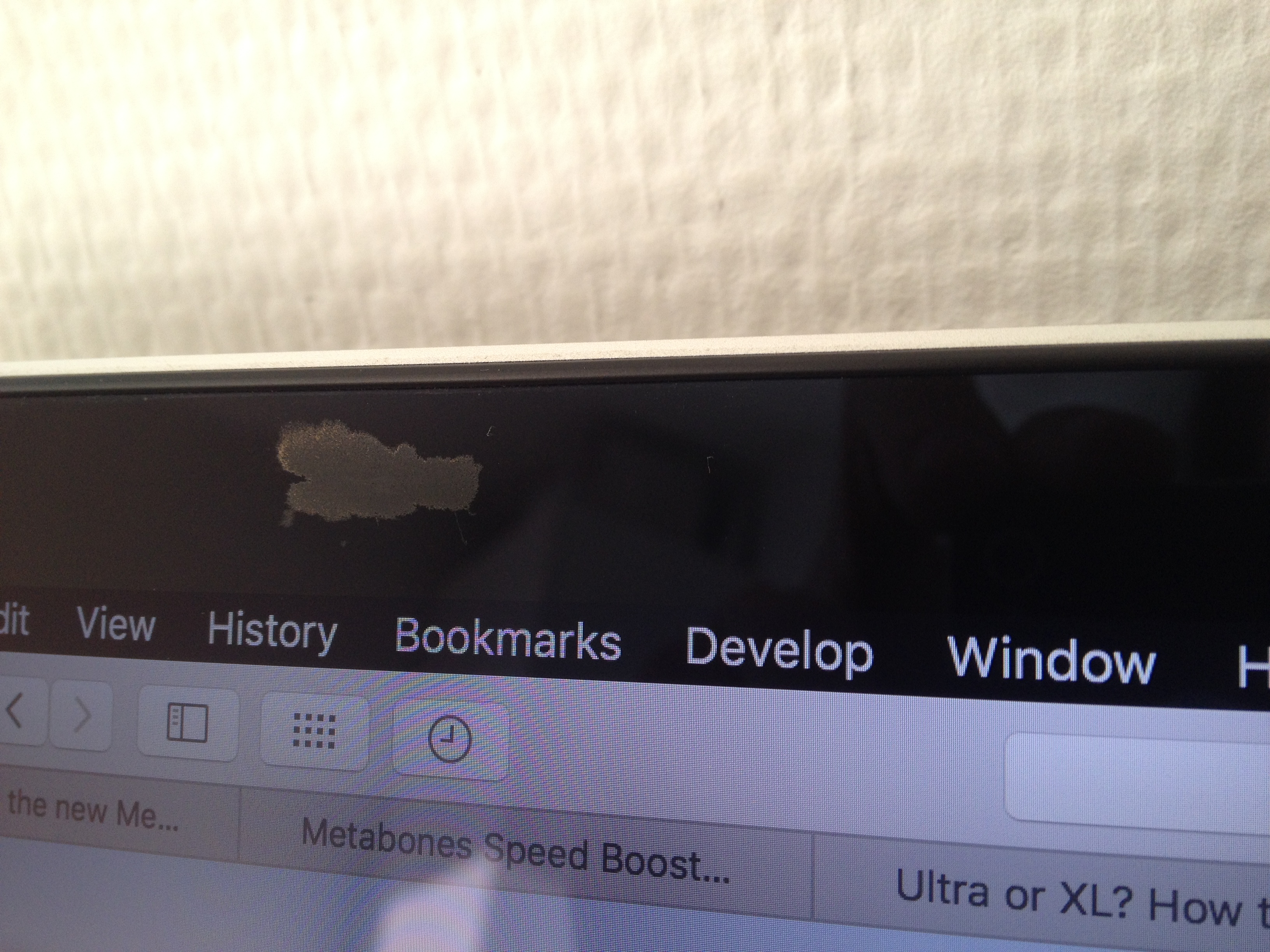 So far the issue is only affecting the bezel of the screen, but when I touched it with the cloth it spread alarmingly easily and instantly tripled in size. It's just a matter of time before it starts affecting the whole screen. I work in image retouching and my specialty involves removing dust and scratches from high resolution photos, and this is really not going to do me any good. I won't be able to afford a repair anytime soon either, I was expecting this computer to last me a few more years.
