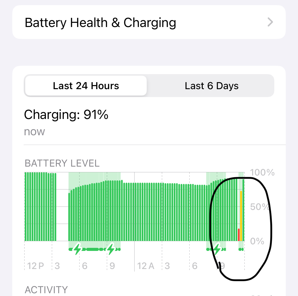 Then it seems that charging takes very long time as you can see, from 6:00PM-9:00PM, the phone was on charger, but only charging from 60%-88%.