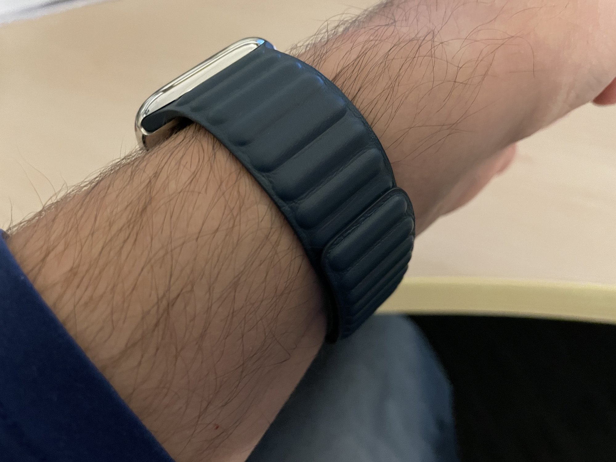 My current Leather Link band almost wraps around to the top of the watch. There are four pellets from the top of the watch, where there is no overlap, I am using the m/l band. My wrist is about 170 mm. Would the s/m be better?
