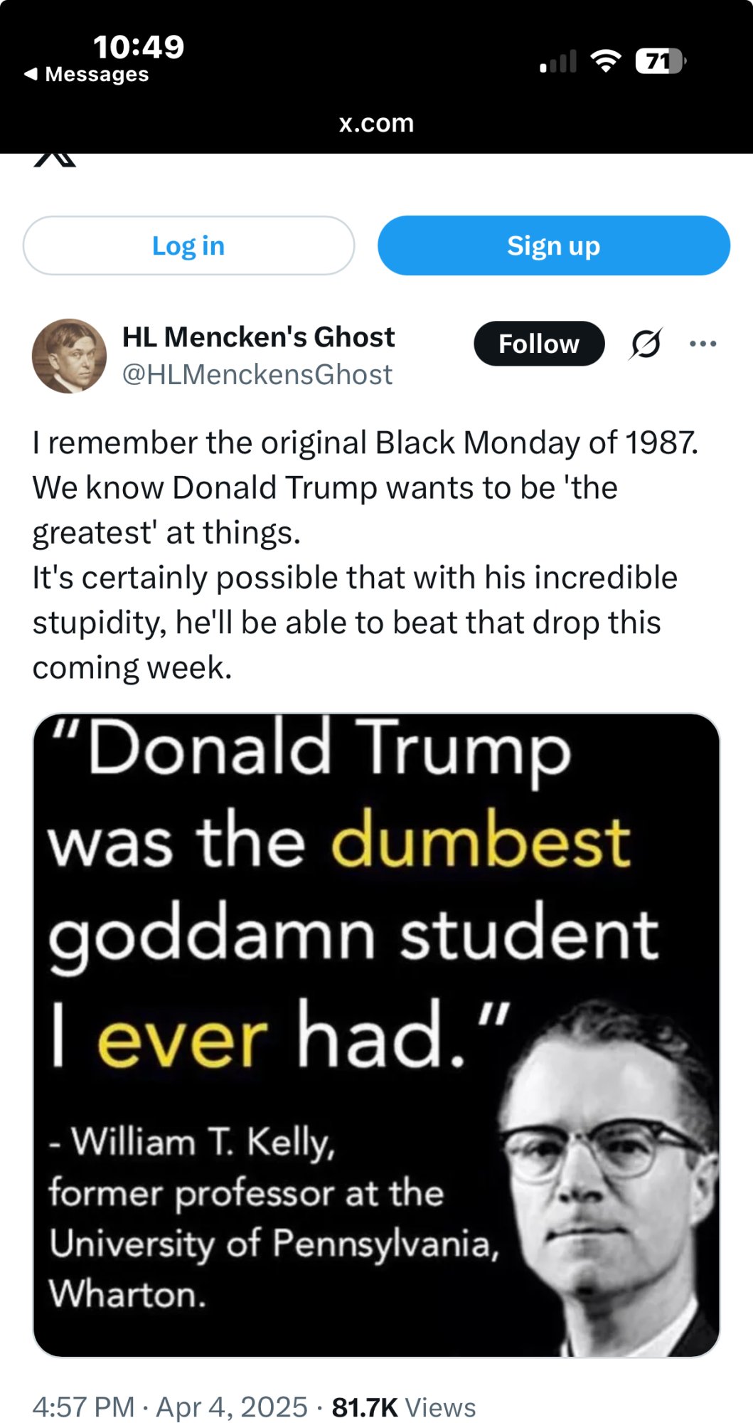 When this selfish unqualified idiot is out of office for good hopefully the economy can recover from these idiotic tariffs. He likes to talk crap about how Biden supposedly did so much damage to the economy over his four years in office, but Trump has managed to do way worse in less than three months since being back in office.