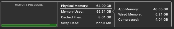 Sorry if this has been retread, I've dug in with all the keywords I can find and only see people talking about how much better the M-series feels, but not many mentions of people who have run the same setup and workflow and seen their new M1/2/3 only used a third/half/etc of the ram it used to on an intel machine. I'm shopping for a MAX 16" with 64 gb of ram anyways, whenever I get it I'll update this to see how it goes.