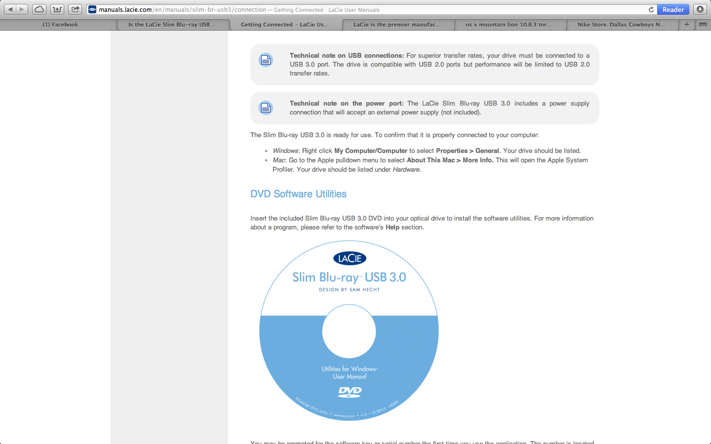 It's USB 3, burns Blu-rays, very importantly USB powered, and it's by LaCie, so I assume it's very good.