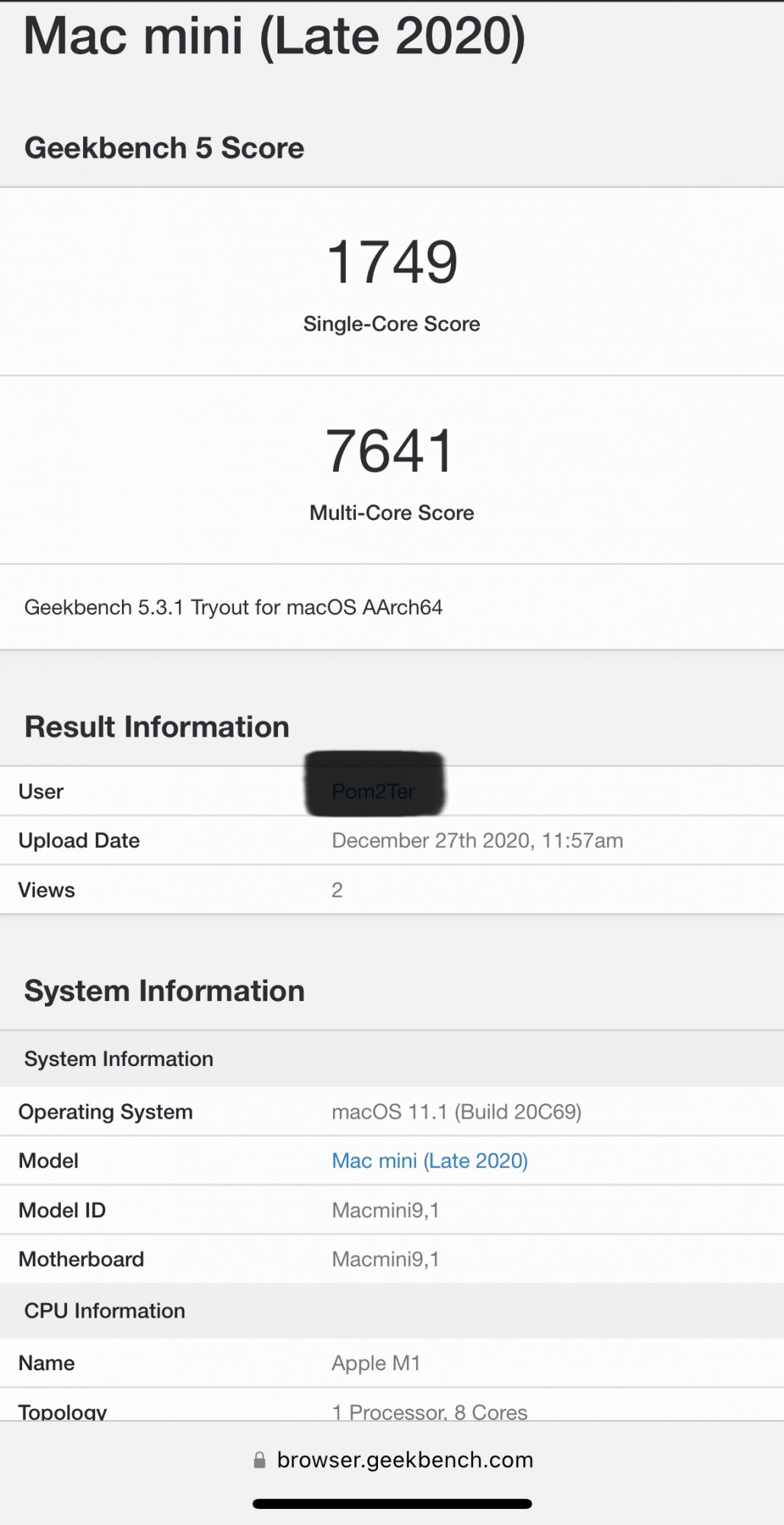 Let me know how fast the M1Mac Mini with 8GB RAM is compared to an Intel 11th Generation Core i71165G7 with 32GB RAM with Windows 11pro is .