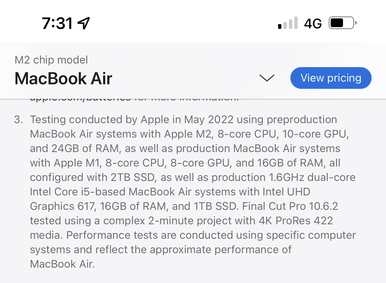 Apple tested a M2 Air with 24GB Ram and 8 Core CPU and 10 Core GPU, against an M1 Air with 16GB of Ram, 8 Core CPU and 8 core GPU, and are claiming that the M2 is up to 1.4x faster than the M1?