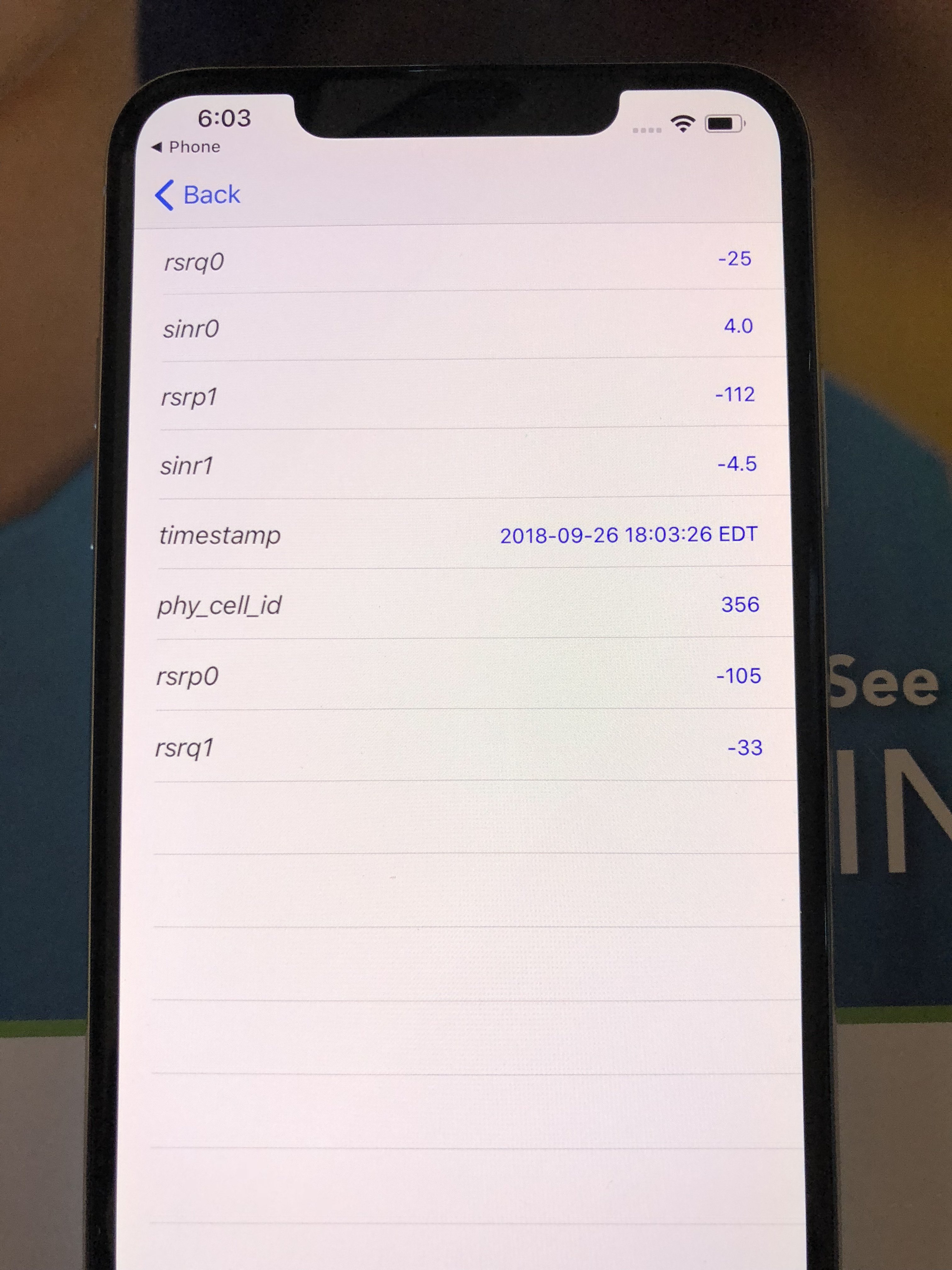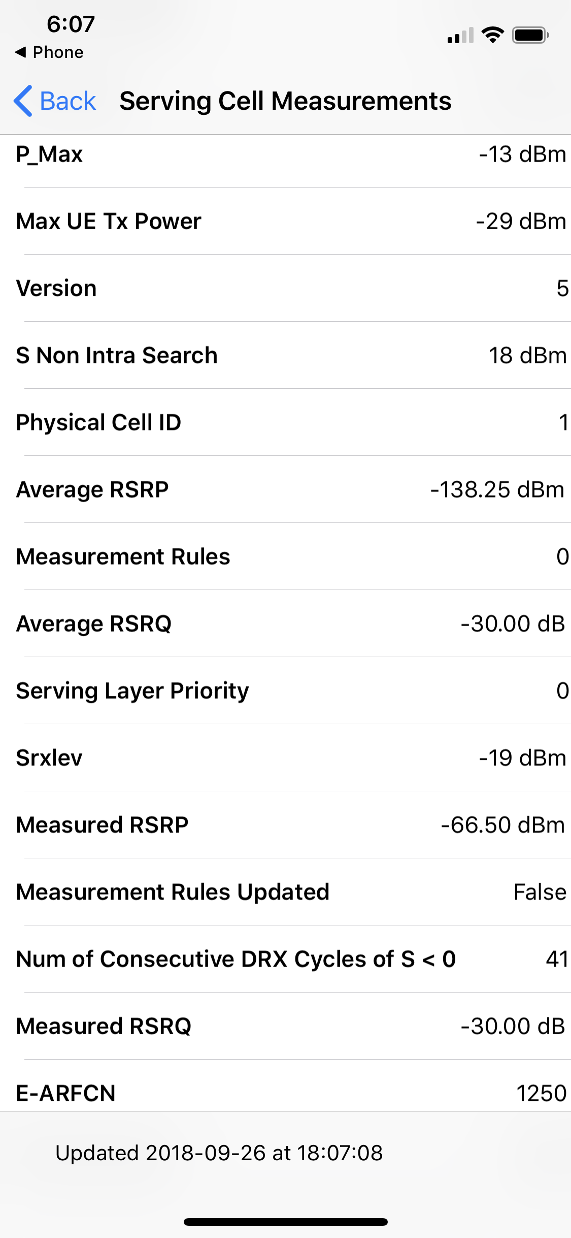 rsrp0 should be between -45 and - 140dBmI tested on both X and XS Max and it's the exact same poor reception -105 rsrp0