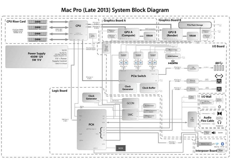 Haswell-EP on C610 leaves 40pcie 3 lines, from those Apple could take 4 pcie 3 lines for 2 tb3 headers and have 4 available for 1/2x NVMe, or take all 8 for 4 tb3 headers.