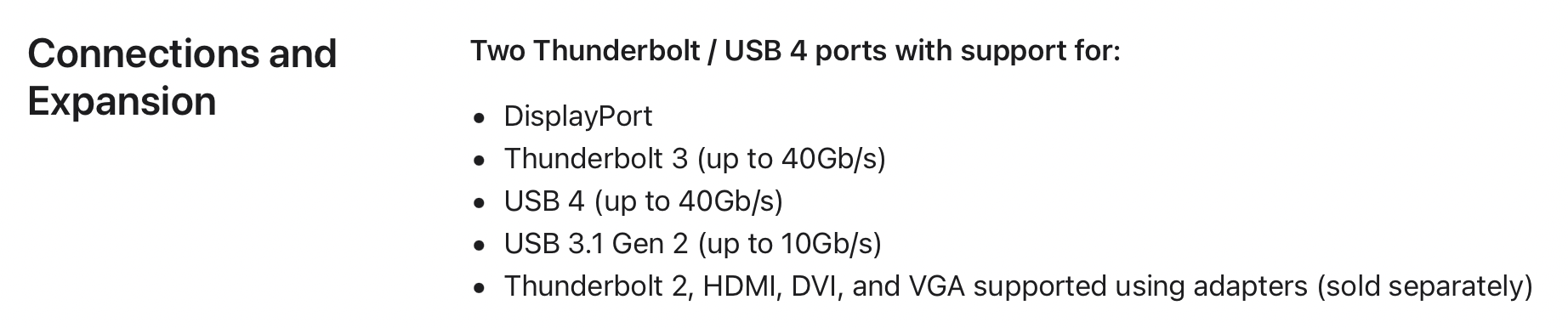 Read this thread: USB on M1 Macs isn't actually 10Gb/s? (Also definitely not USB4)Any links? There was so much click bait I stopped watching and reading reviews.