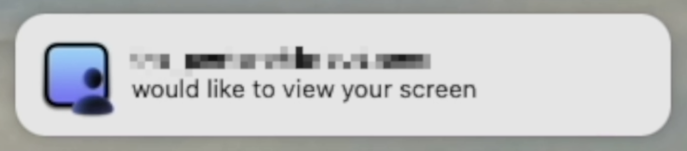 It is supposed to be possible to share screens through iMessage. While I am able to connect from both ends, the connection will be aborted after a short while. Sometimes, but not always, this message comes up before the connection is cut.
