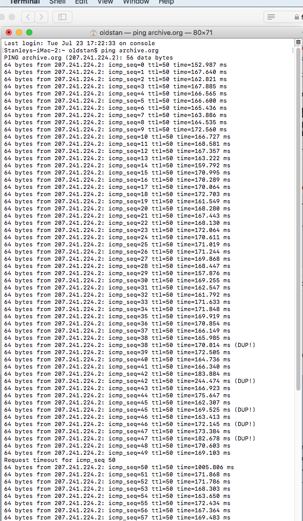 8767092, I'm sorry about the delay. Sometimes, circumstances keep me away from the computer. There is a screenshot uploaded at your request. At the time of taking the shot, Terminal was still adding to that long list!