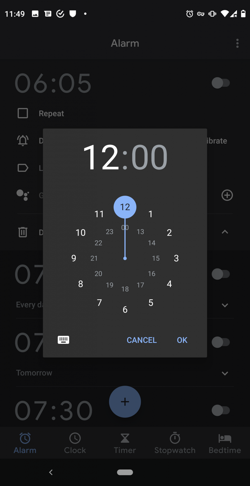 I've attached two screenshots of Android 10's stock analog alarm to illustrate what I'm talking about. You tap "+" to add a new alarm, then you select from an outer circle of 12 numbers to choose the hour, then you select from a newly displayed circle of options in 5-minute intervals (00-05-10-15 ...) to choose the minute. For me at least, it's much more intuitive than the method the stock iOS alarm uses. Thanks!