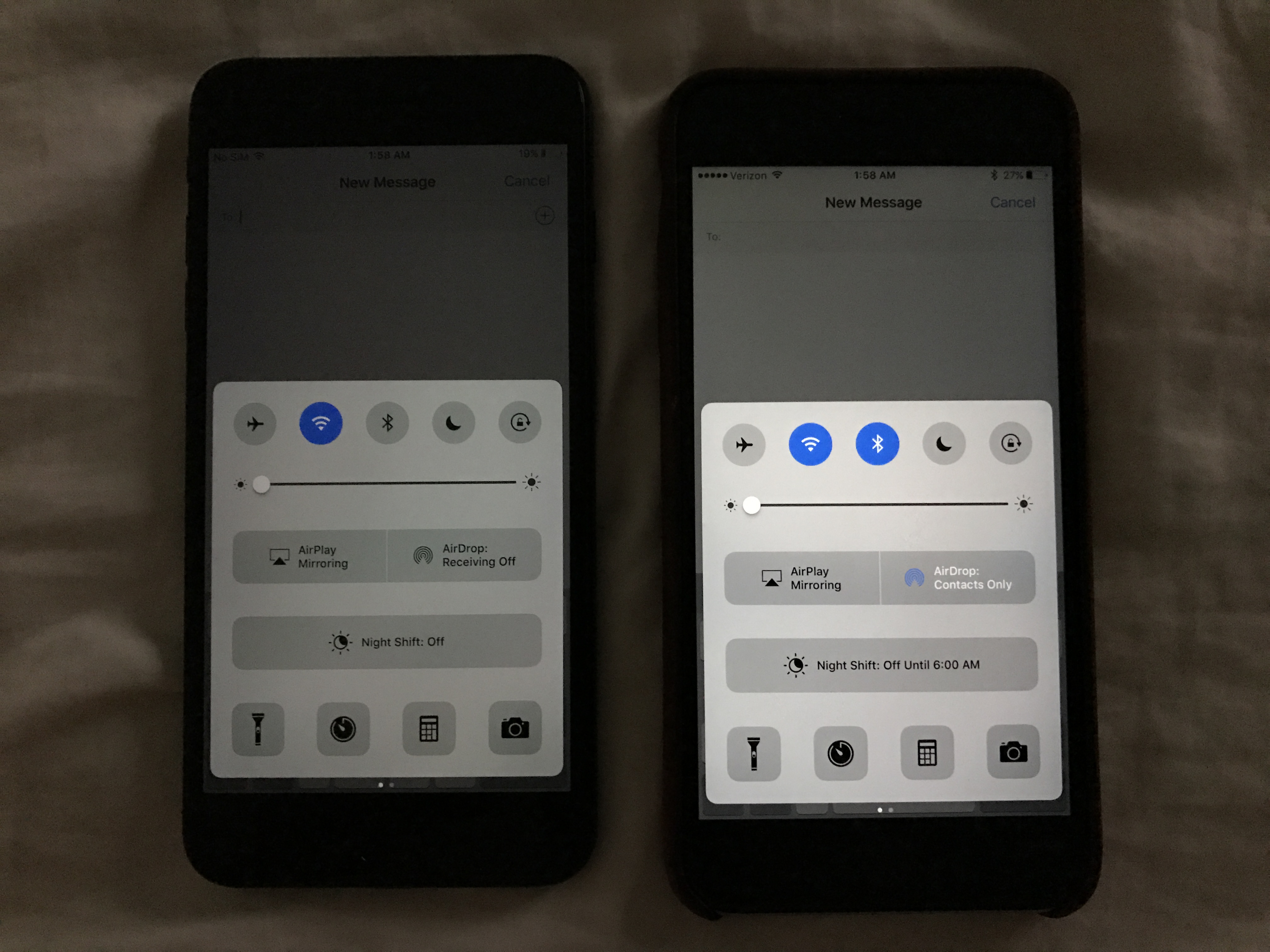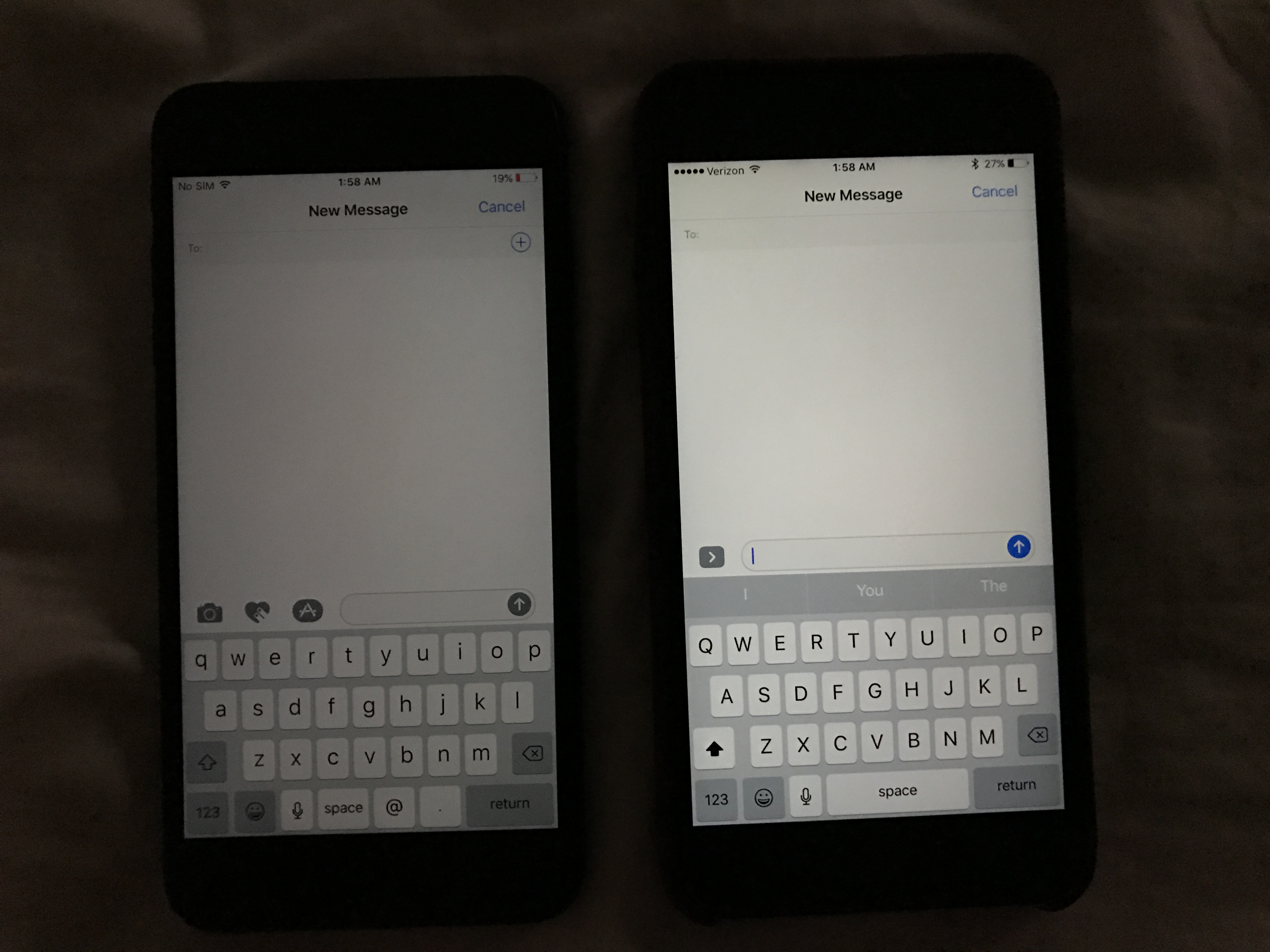 6s plus vs 7 plus. Both at minimum brightness focus on center in between the two phones.