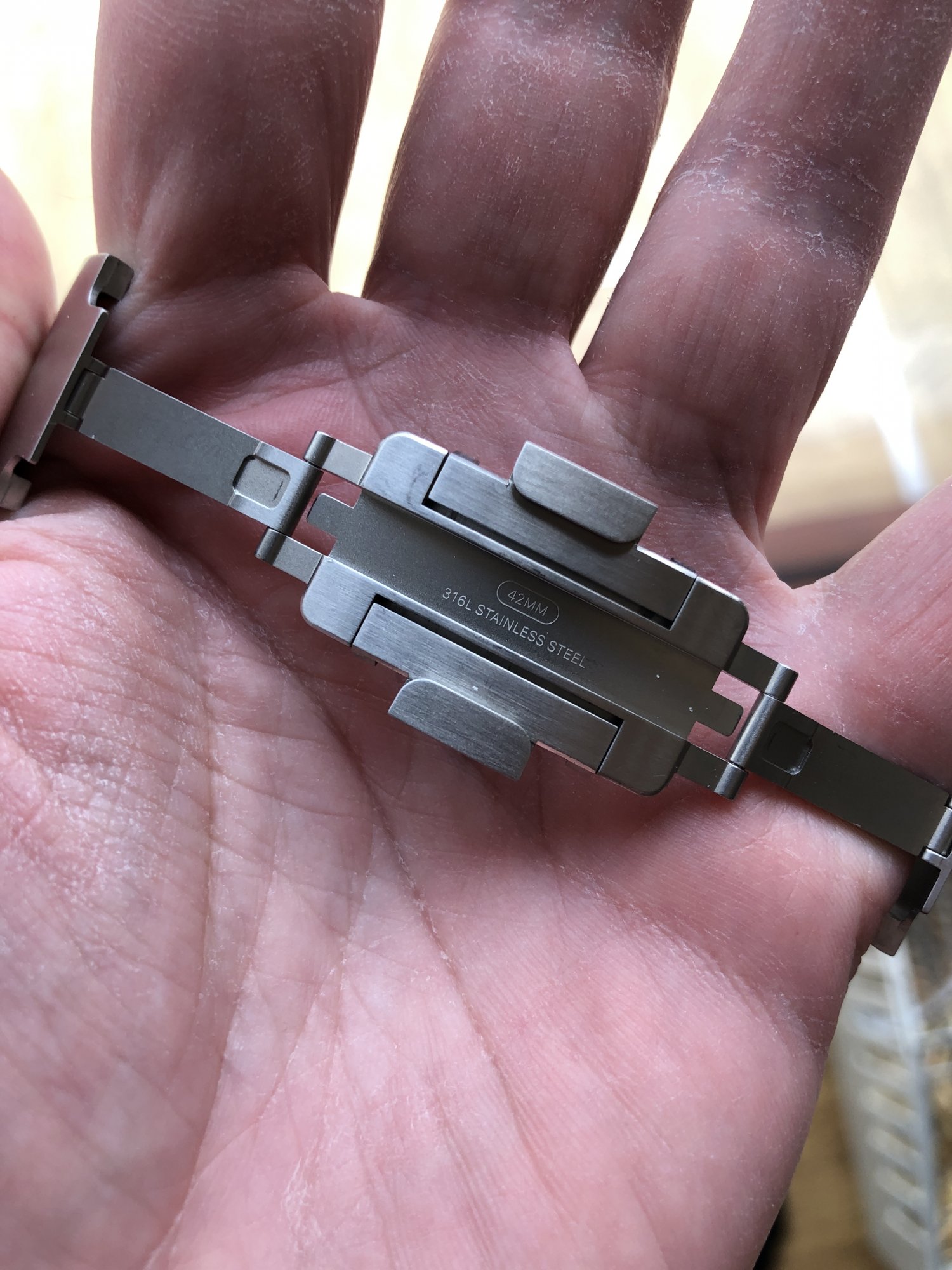 - The Apple band came much cleaner than the Chargerstore band did. The inside of the clasp and the links on the Apple band were pristine while the Chargerstore had remnants of something (oil maybe?) on the inside of both. Doesn't affect the working of the band, but clearly the Chargerstore band never made it to the final cleaning stage in the factory.