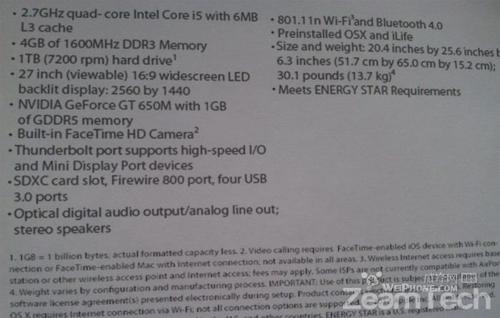 T Trojans macrumors member Original poster Sep 11, 2012 45 0 Sep 11, 2012 #1 This image belongs to a website called Weiphone. here is the link I found http://zeamtech.com/imac-2012-leaked-specification-sheet/