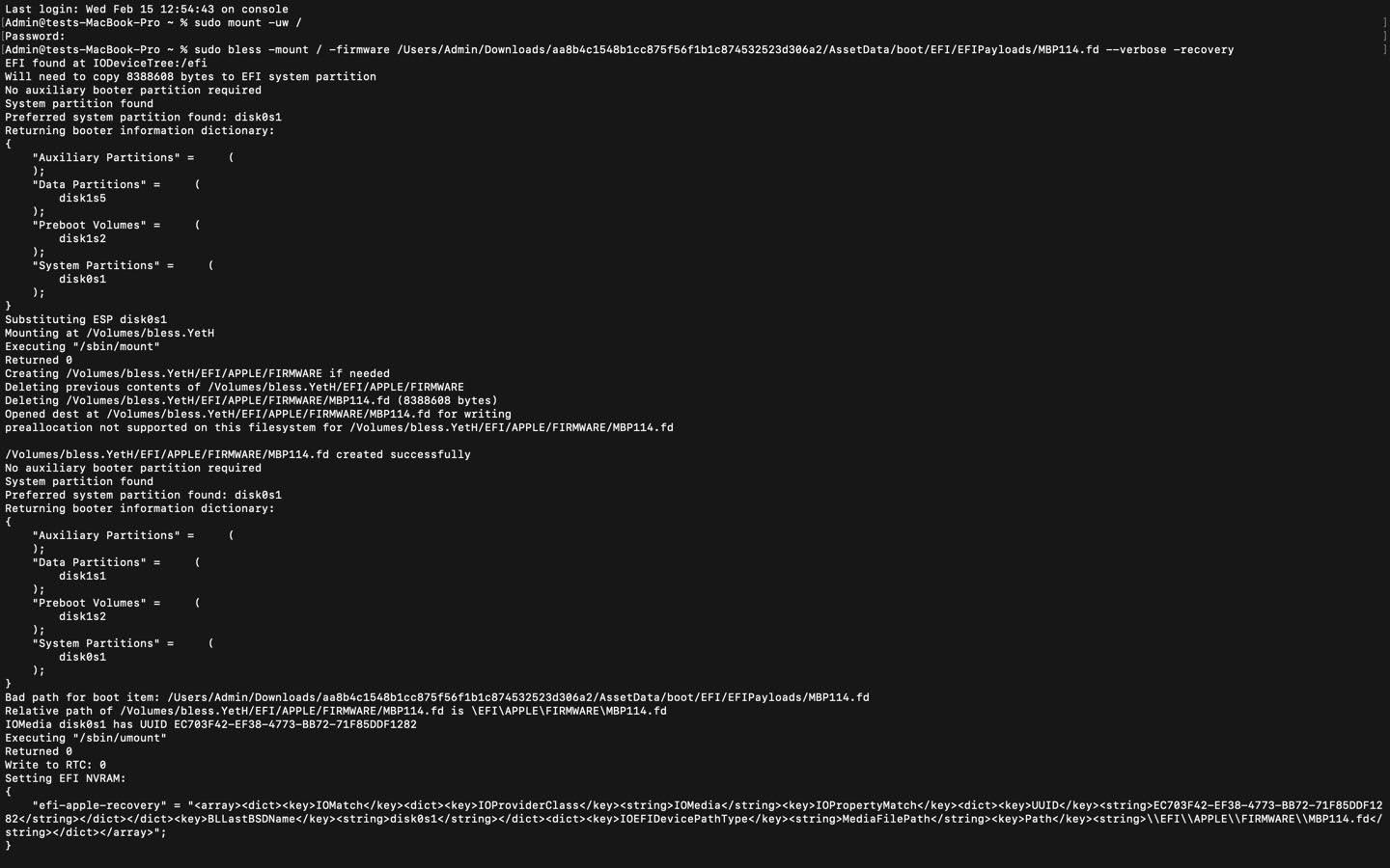 I'm trying to upgrade from Mac OS Catalina to Monetery because GoodNotes on my Macbook stopped synching with it on my iPad because the version on my Macbook is too old, and I can't update it because Catalina is too old. I can't currently can't upgrade to Monterey because the person who we bought the computer from swapped out the original OEM SSD hard drive for a third-party SSD drive, so the OS won't update the system firmware and install Monetery. We do not have the original hard drive. I tried this workaround here to update the firmware despite the third-party drive, but haven't been able to get it to work. I am attaching the readout from Terminal I am getting currently when I try to update it in case anyone here can decipher why the firmware is still not updating.
