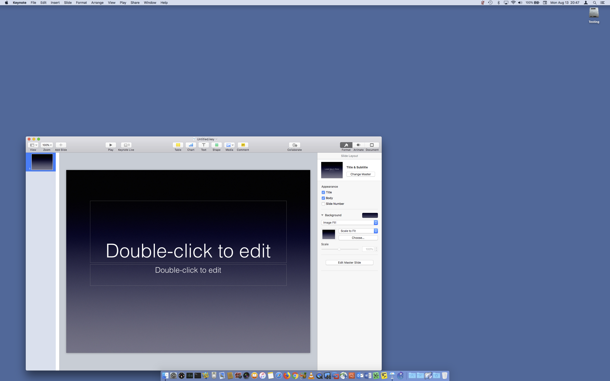 3. Documents from applications such as Keynote and Omnigraffle which filled the laptop screen now open in the bottom left corner of the 30 inch monitor.