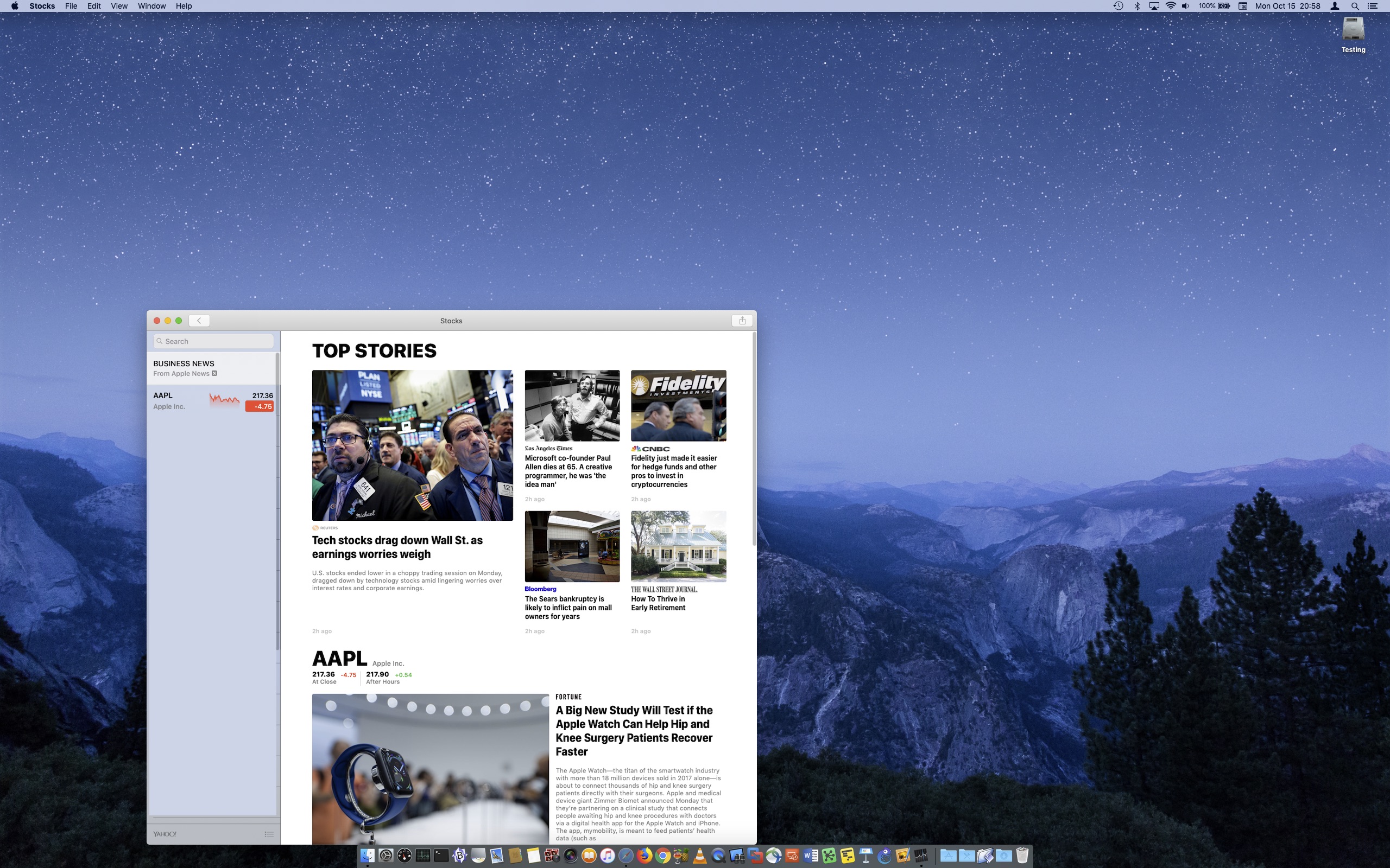 2. Applications such as Photos, News, Stocks which I put in the center of the laptop screen now open in the bottom left corner of the 30 inch monitor.