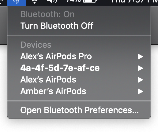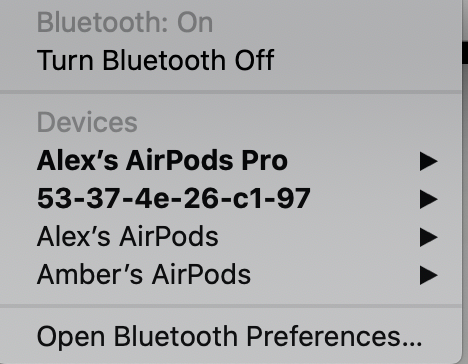I recently got a 16" MBP and the accompanying AirPods Pro. Life was good. Until I discovered that while watching YouTube videos, the video would randomly pause, the AirPods would disconnect, and a phantom MAC address would appear in my bluetooth device list (see attached image).
