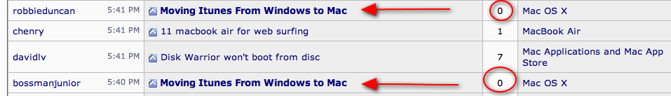 Continuing weirdness with Forum Spy. Occasionally a post in response to a thread will appear on Forum Spy as a new thread, as in this case, where robbieduncan's response, which should have appeared not bolded and with a "1" in the Replies column, appears like a new thread:
