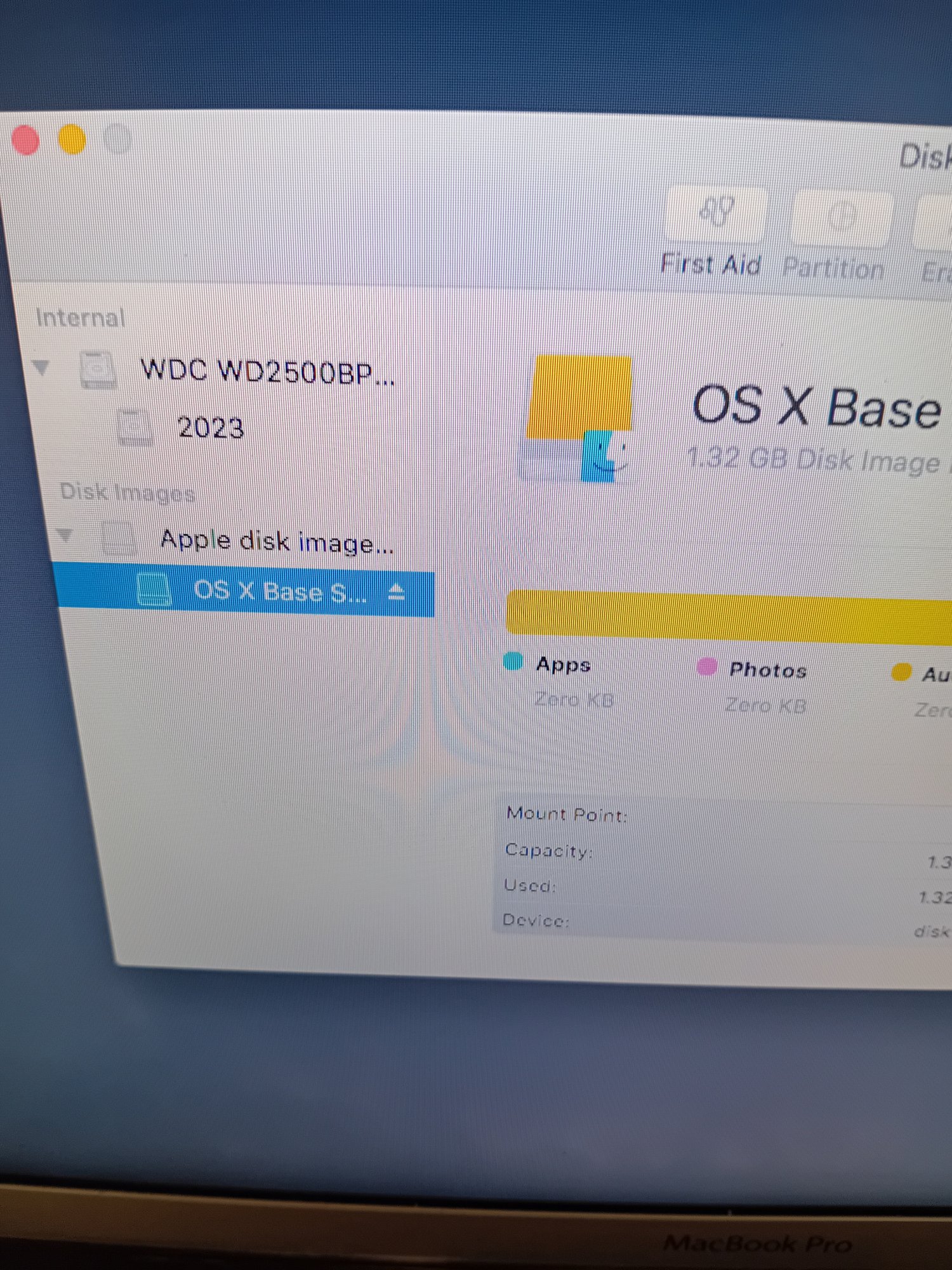 Also attached is an image from Disk Utility, these are the drives available. I'm not sure what Apple disk image or OSX Base System are, I'm trying to reinstall on the 2023 Disk, which I think is a partition of the one above it. Would deleting the partition do anything?