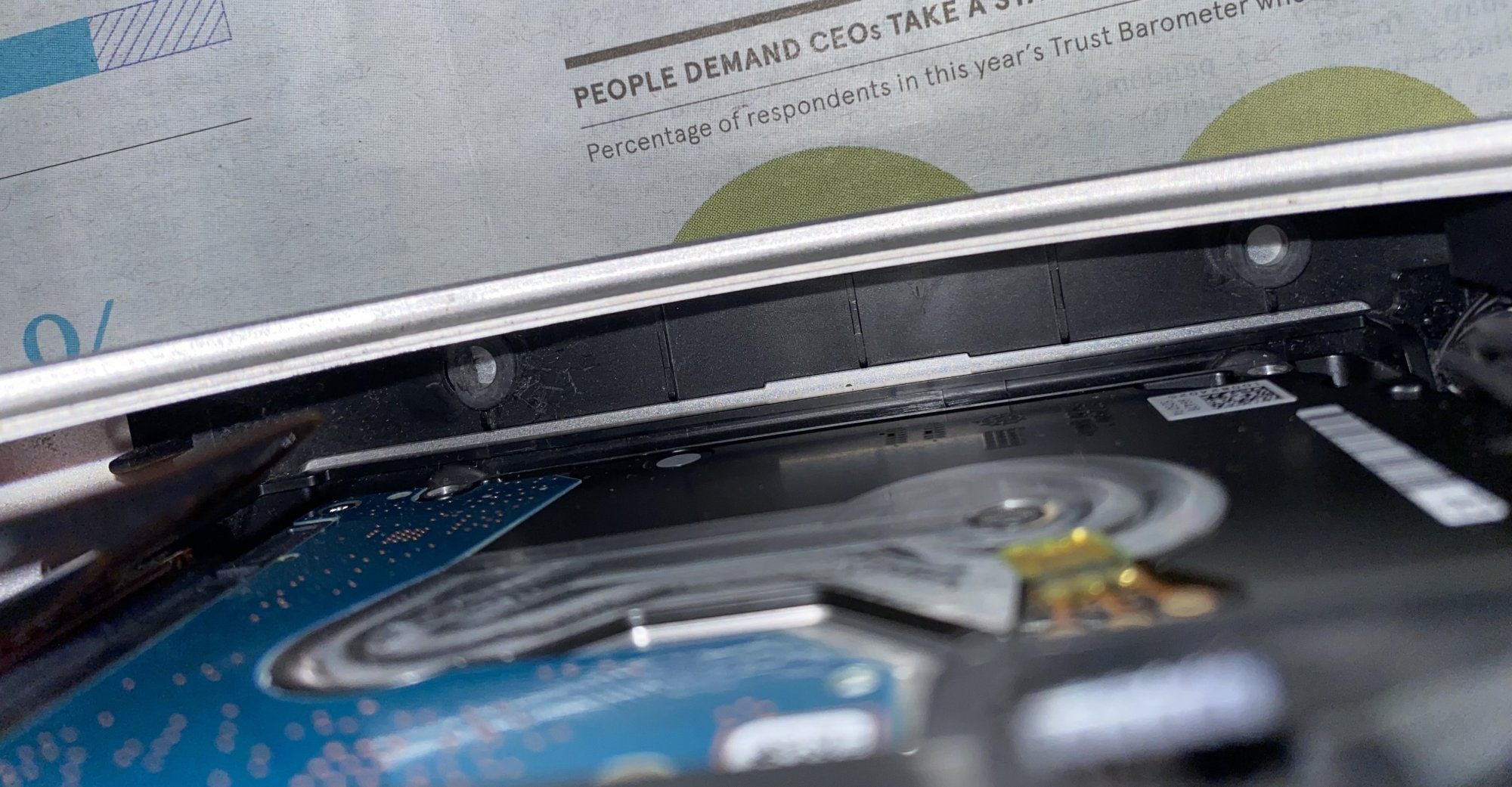 On closer inspection, it appears that whoever installed the existing SSD has damaged the left hand rubber grommet, so I cannot seat the drive in the lower bay’s two rubber grommets comfortably.