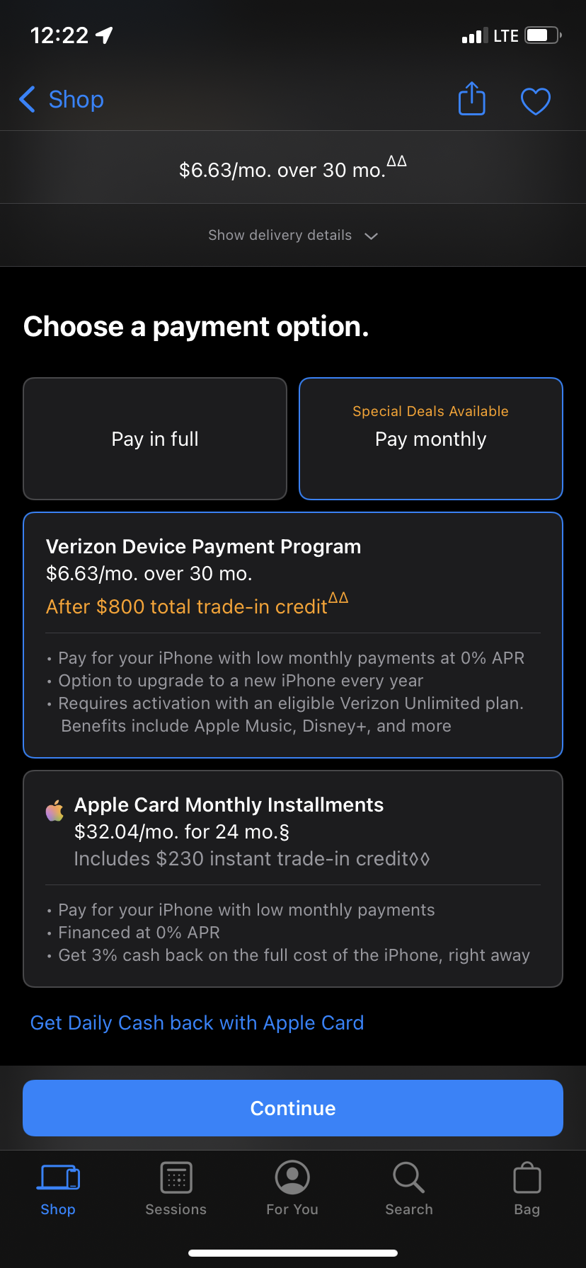 I preordered the 128GB iPhone 13 Pro (two of them, actually) on day one of pre-orders. My wife and I traded in our iPhone XR's in the process. Being a bit of a skeptic, I actually screen-recorded the entire process (purchased through the Apple Store iOS app) and as such have clear proof of selecting the proper deal that offered $800 in worth of bill credits (spread out over 30 months). There was another option to finance through an Apple Card (which I don't have) and you'd receive $230 in credit. The deal specifically indicated that it may take 1-2 billing cycles to issue credit, so I haven't thought much of it since. Flash forward to today. I decided to check with Verizon and they said they have no record of my upgrade let alone even offering a promotion (uhhhh). They said there is nothing that can be done and I have to go through Apple. I remembered receiving an email a couple of weeks ago from Apple saying my trade in received, so I went back and double-checked the email and it said I received $230 in credit. I called Apple support today and explained the situation and offered to share the video (again, proving I selected the $800 credit via the Verizon Device Payment Program) but was told there isn't a way for me to send it to them, so the proof I have is basically useless and they're going to make a judgement call based off of whether or not they believe me. Or rather, whether or not they want to. I was told they would submit a request for a trade-in review and I'd hear back in 48 hours. I can't help but feel a little helpless in what I feel like should be a very straight-forward process to prove and correct. And we aren't talking about some small sum either. I did indeed receive $230 worth of device credit per my Verizon account, but that puts me $570 short, times two. $1140 is a big chunk of change that shouldn't be coming out of my pocket.