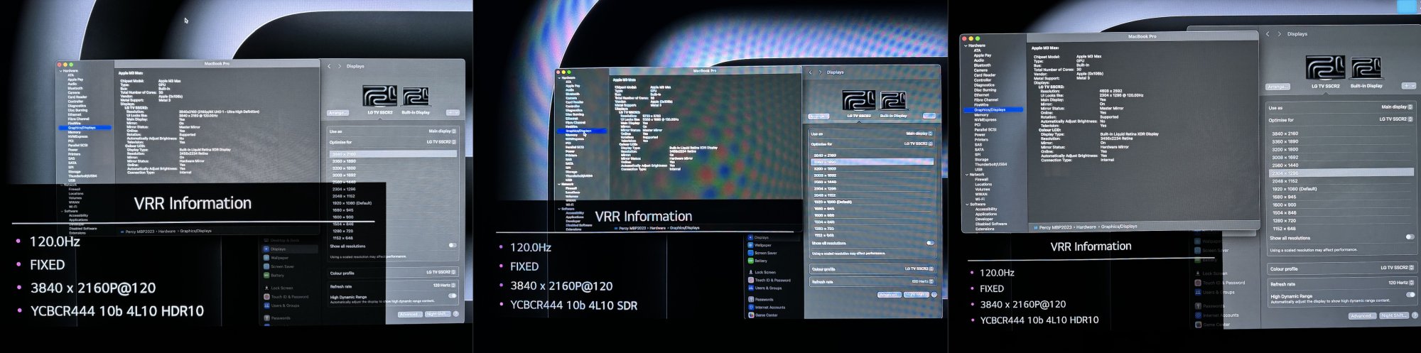 - Interestingly, at the 1080x1920 scaling, I can again achieve 120Hz with HDR.