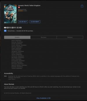 Apple Support said I bought the SD version but since 99% of the movies I buy are through Apple TV and I only show the HD movies, and these are all available in HD that argument doesn't hold water. Plus I know these were playing in HD before. Plus, that doesn't explain why I, if I supposedly only have the SD version, why I don't get the BUY button instead of the PLAY button like I do with Donnie Brasco.