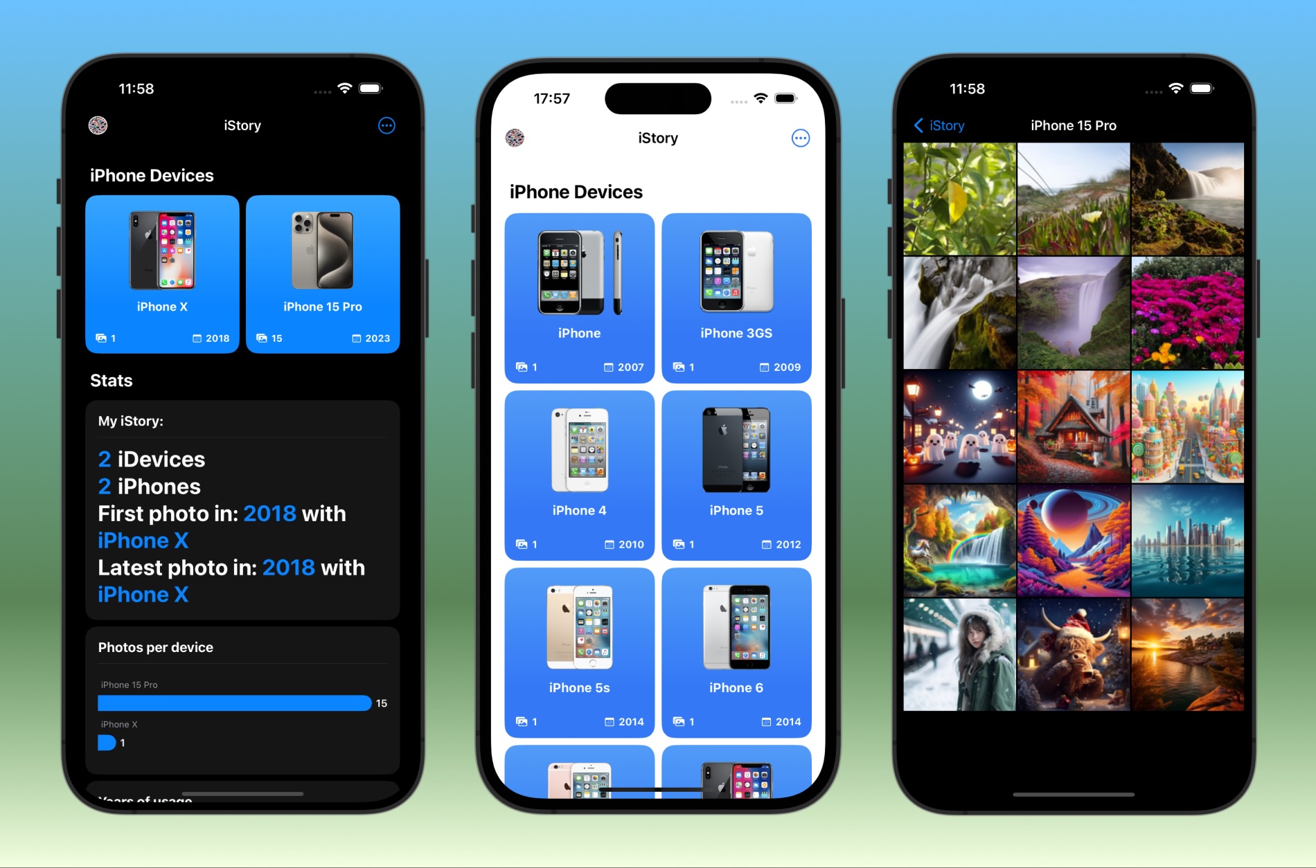 It's incredible simple and made it just for fun, it allows to browse all the photos taken with each device, view statistics and export your personal infographic.