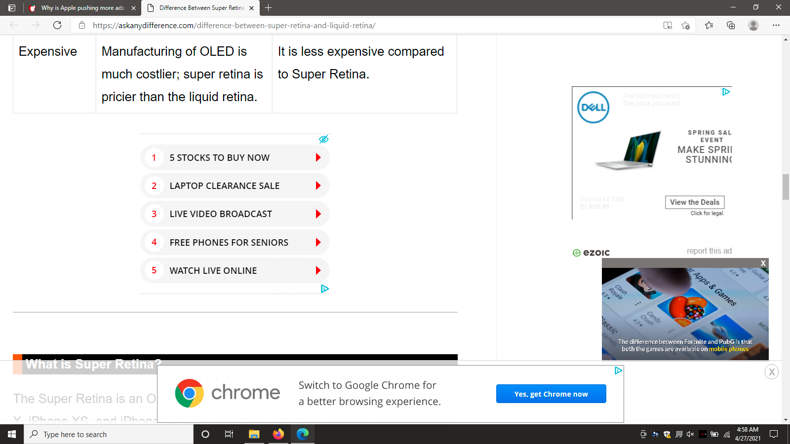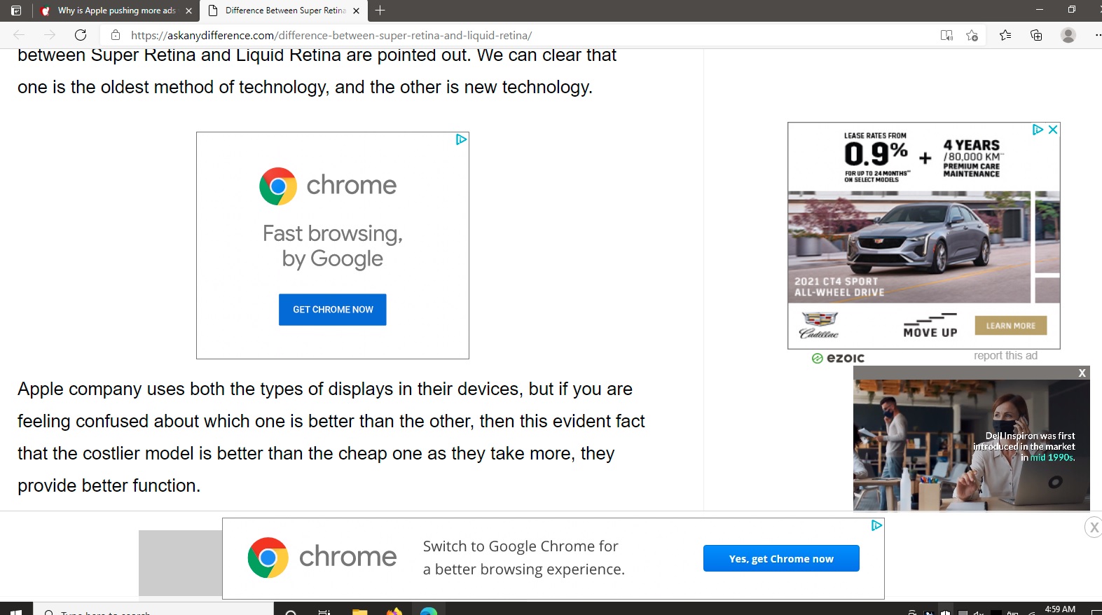 I just checked this on a windows 10 laptop and those web sites are full of ads. Well I just checked this with Microsoft Edge and those websites are hardly readable because of the ads and blocking the text making it very hard to read.
