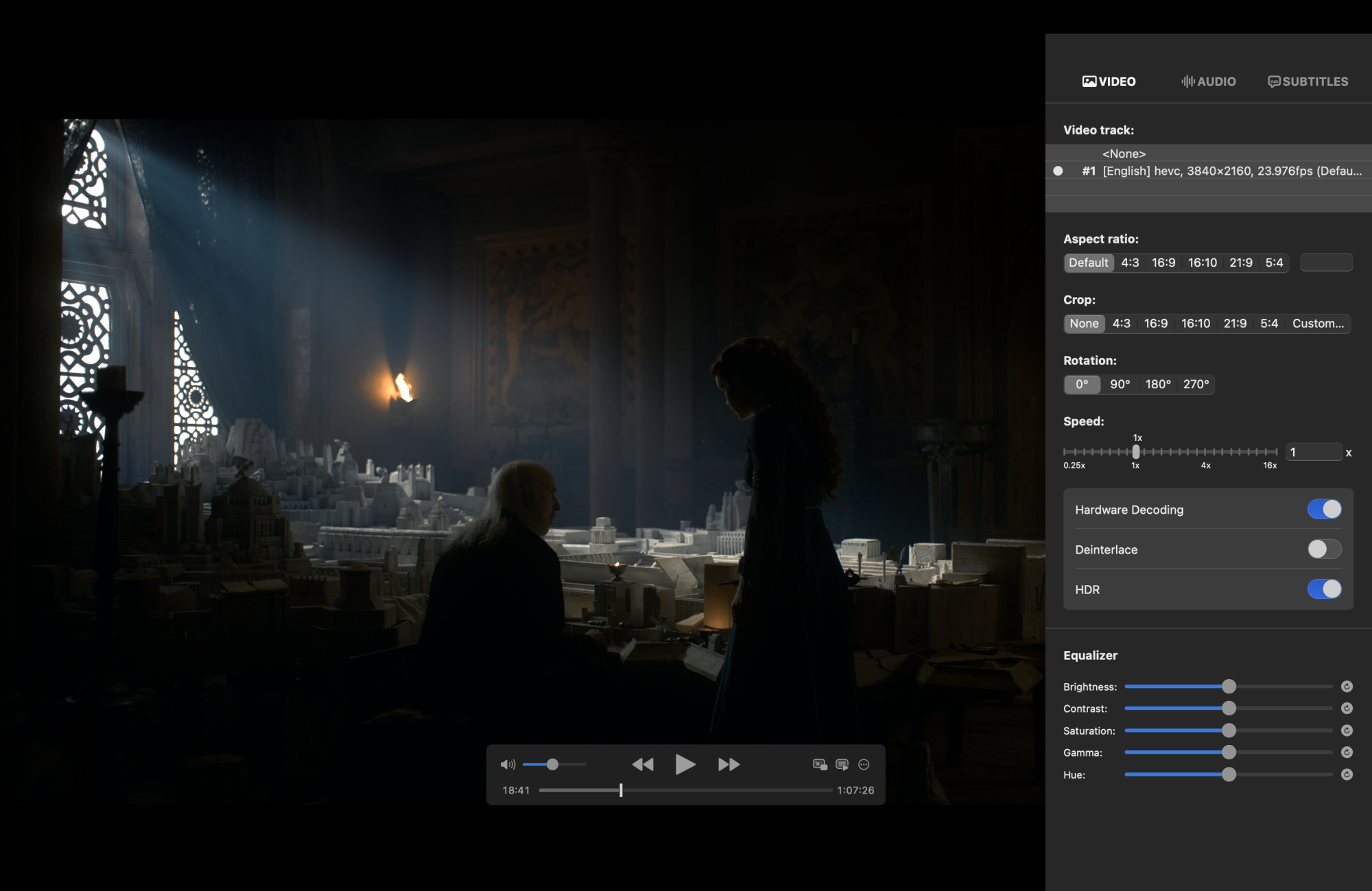 Optimus: Won't play many of my HDR (even regular non-hdr) videos which ALL others play. NO options for anything, like nada (not even subtitles). No volume shortcut? Also got my FIRST EVER "your system has run out of app memory" error – used entire 40GB swap disk on my Mac mini M2 Pro (300+Gb left on my SSD btw)... AND a movie wasn't even loaded! (I had closed the movie...).