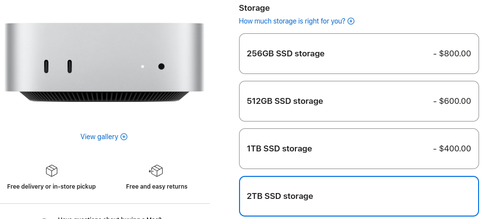 Yes but why just have one drive anyway? I have been using multiple drives on windows PCs forever. If I get one of these Mac Minis, I will just add a second drive (which is external) and just put my main user account there—along with other files.Right? Who is going to buy a $150 2TB Samsung SSD + external enclosure when they can pay Apple $800? 💵