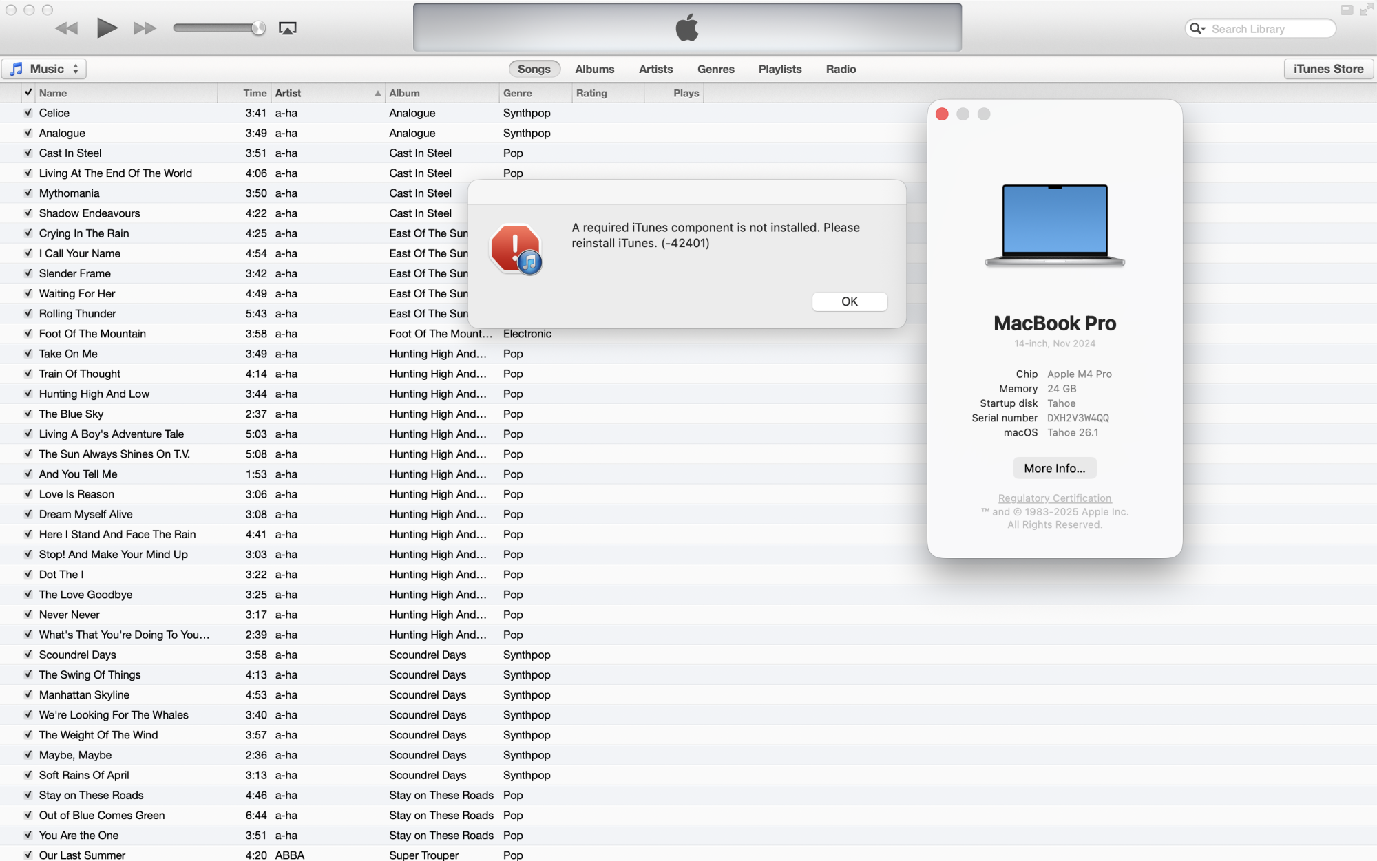 First of all, thank you SO much for making this, you're truly a life saver. I already accepted i'll have to use finder and apple music with their loads of issues, but this is a breath of fresh air! I went bold and installed 11.0.5 on macOS 26.1 on my macbook M4, got the dmg from https://www.theiphonewiki.com/wiki/ITunes#macOS_versions.