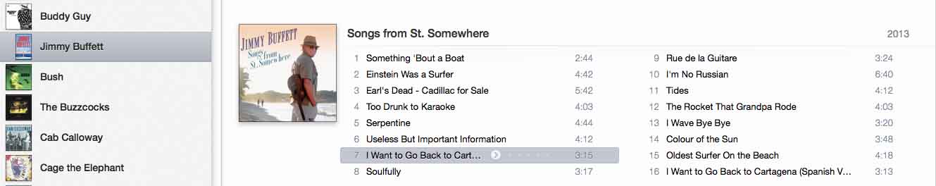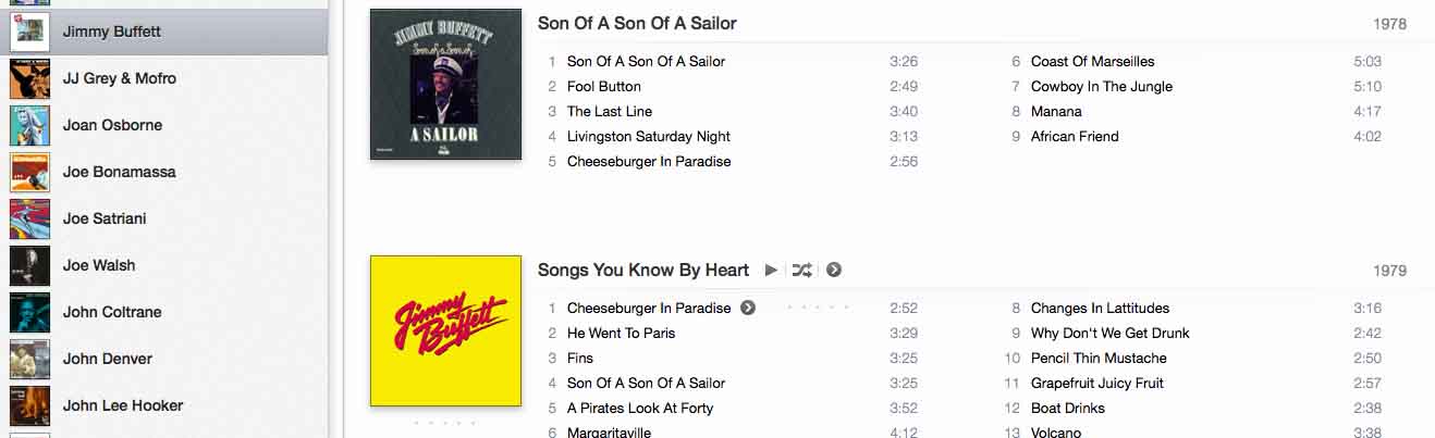 I have an album (Jimmy Buffett - Songs From St Somewhere) and it's listed in the B's under the artist tab 'Jimmy Buffett'. I kid you not! Look: