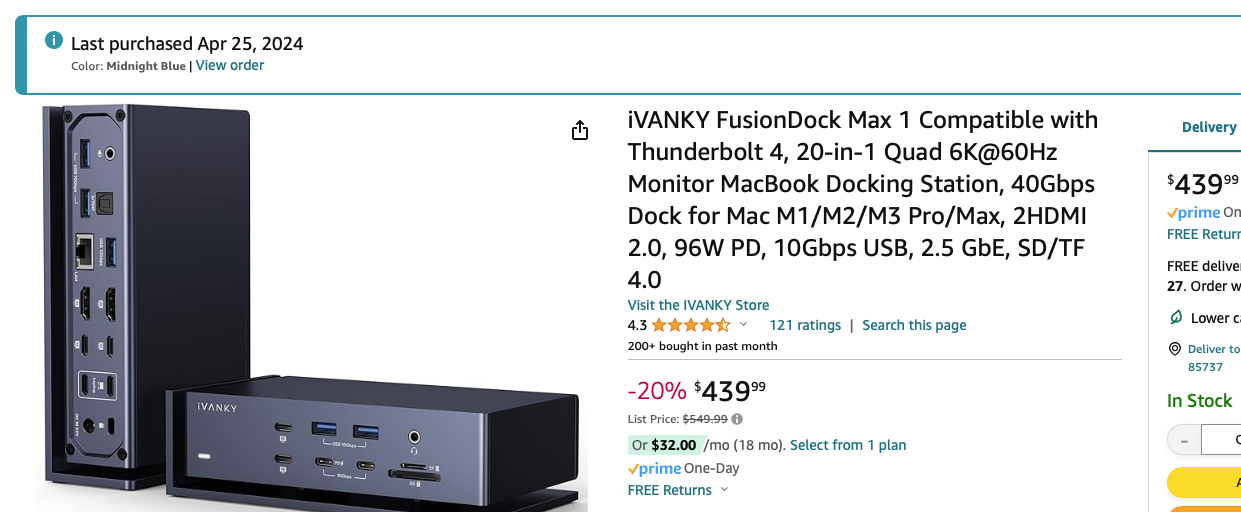 I`m looking to get either the ivanky fusion dock max 1 or the caldigit ts4.