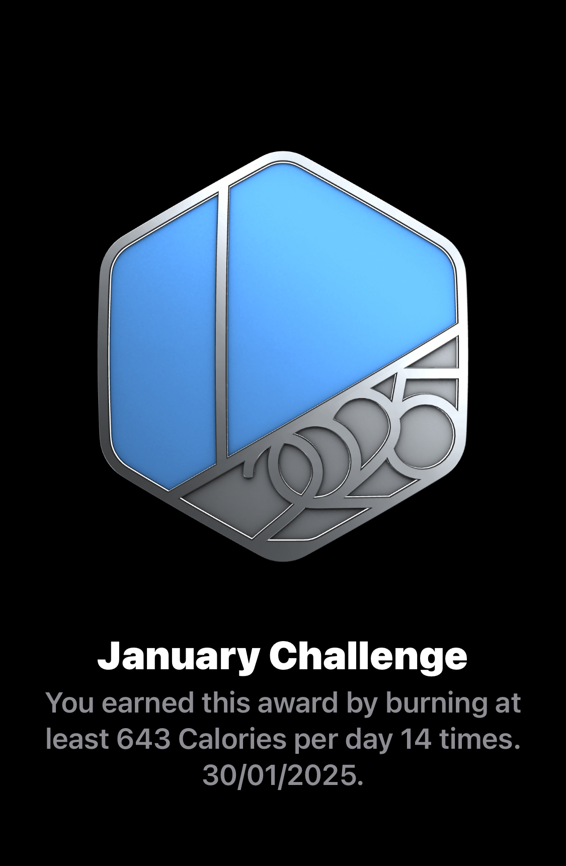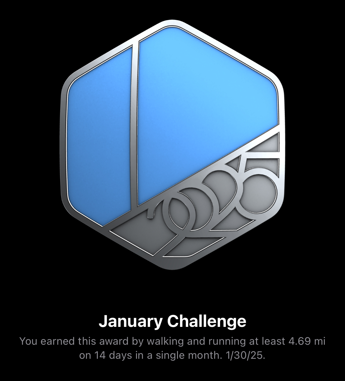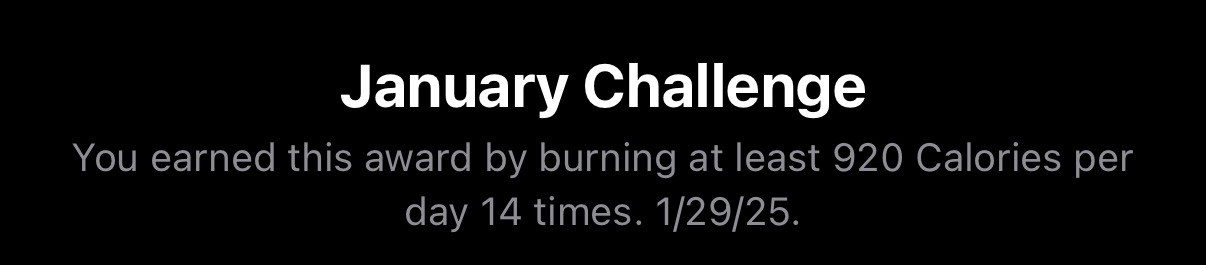 It looks like you got three as well! WTG! Alright, January is over... now for February!Congrats to everyone on finishing these challenges! This month is especially impressive since you’ve completed three of them. By the way, a new Apple Watch user started a thread yesterday morning for the February challenge: https://forums.macrumors.com/threads/february-2025-activity-challenge.2448419/