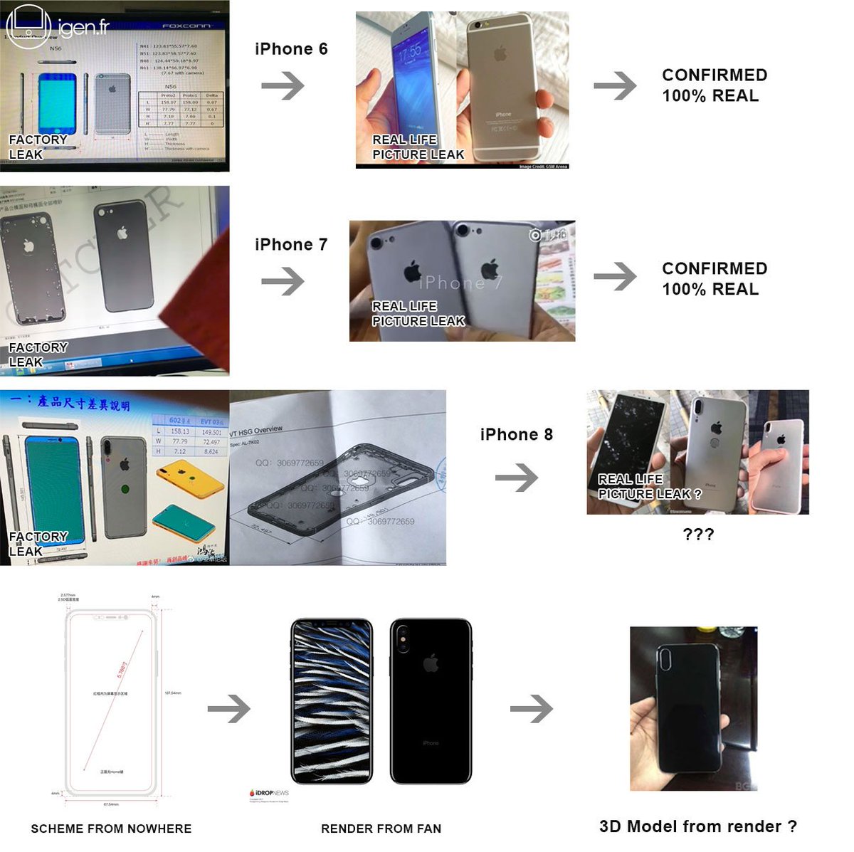 And most importantly: LOOK at the three CAD files in your picture (the one with "iPhone 6 and iPhone 7 confirmed"). First of all, compare the CAD files of the "iPhone 8" with the prototype. The front facing camera is different, there are no front facing sencors on the file, the position of Touch ID is different. And if that is not enough, look at the iPhone 6 and iPhone 7 file. Do you see the difference to the "iPhone 8" file?