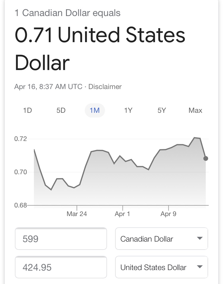 So actually it’s you who do not understand the value (or lack thereof) of your own Canadian dollar, exchange rates—or basic arithmetic, isn’t it?