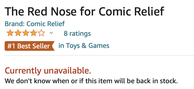 The new nose is being sold for £2.50 (about $3) on Amazon and the Comic Relief website, where orders are limited to eight per person ahead of this year's Red Nose Day on Friday, March 17. Donations can be made via Amazon Pay, with 100% of proceeds going to Comic Relief.