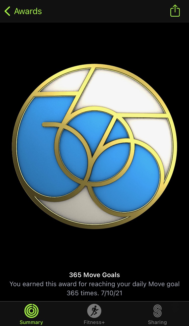 Congratulations on the 365. Still have a 2 and a half months left to get mine.Normally this would be an easy goal for me (Earn 200% of your Move goal 17 times), but I have had too many car days recently (the wife and I went on a trip). I'll see if I can get back on track, but the heat will not help.