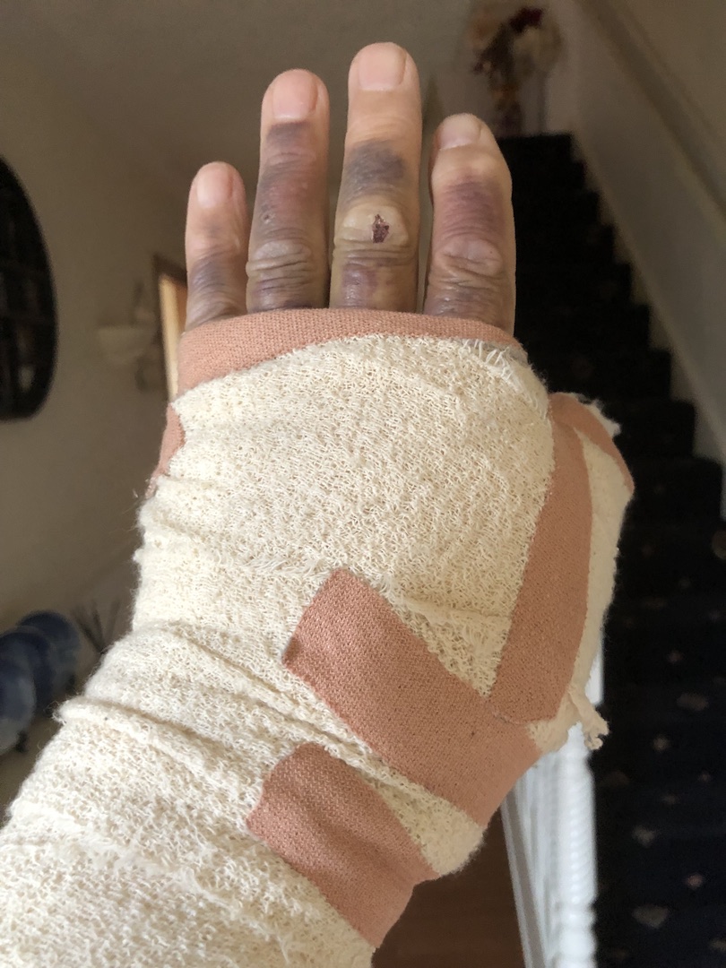 Dislocated and bust thumb - pinned and healing slowly