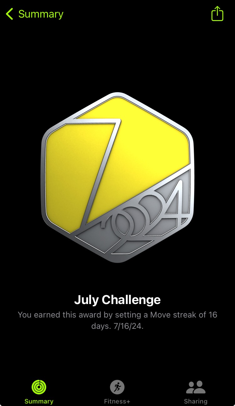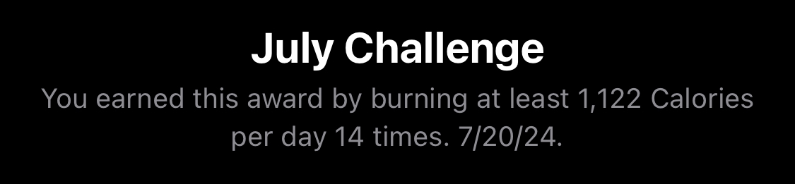 Same. I only had a chance to go to the park for an outdoor walk a few times due to triple digit temperatures, so the entire summer is mostly an Apple Fitness+ filled summer of working out in the home gym.Perfect here too. Next challenge better not be too hard in this heat.