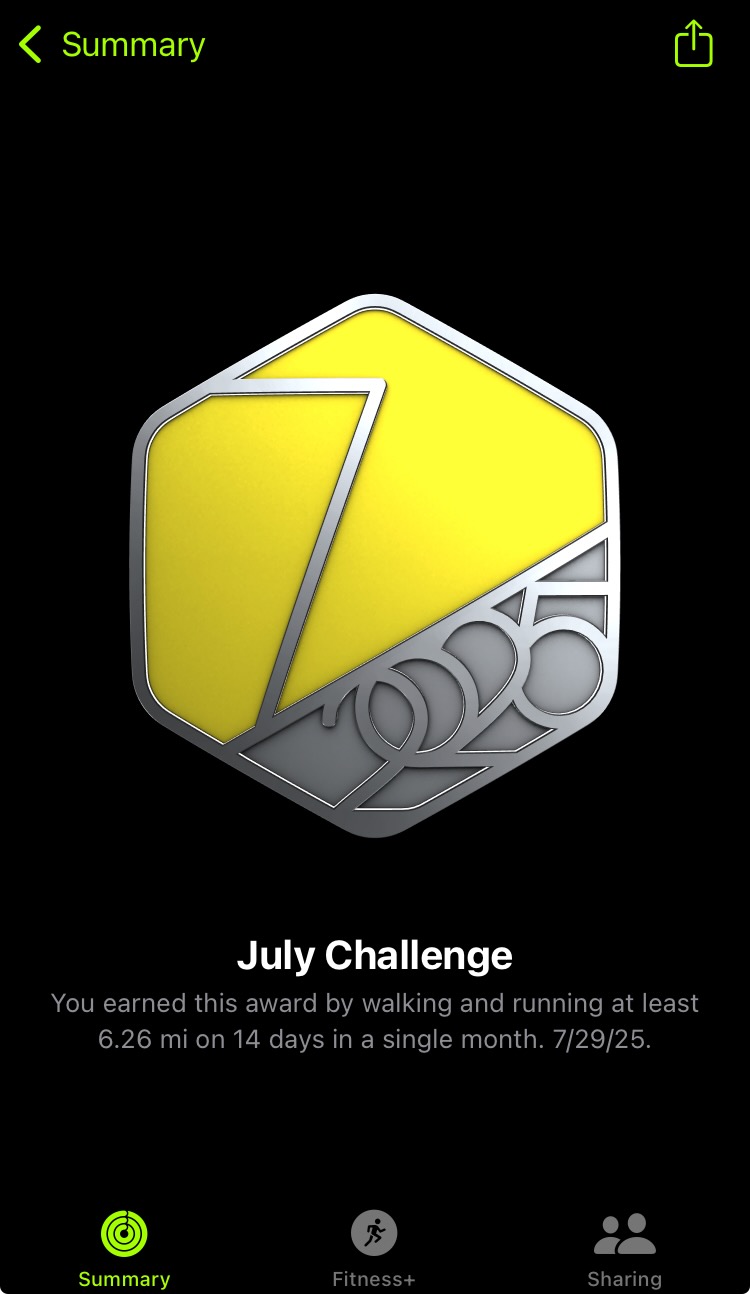 That is exactly how it works. Don’t worry though, it’s almost August and you’ll get a fresh one.I don't know if I can achieve it because I don't know what it was. But maybe you mean that with only 6 days left in July, if it is impossible to achieve it then it simply disappears. In that case this explains it. Looking back on July I've only closed my rings 6 times. So I guess since it's likely impossible to achieve any potential goal with 6 done and 6 to go that seems to explain my 'issue'. Thanks for the clarification.