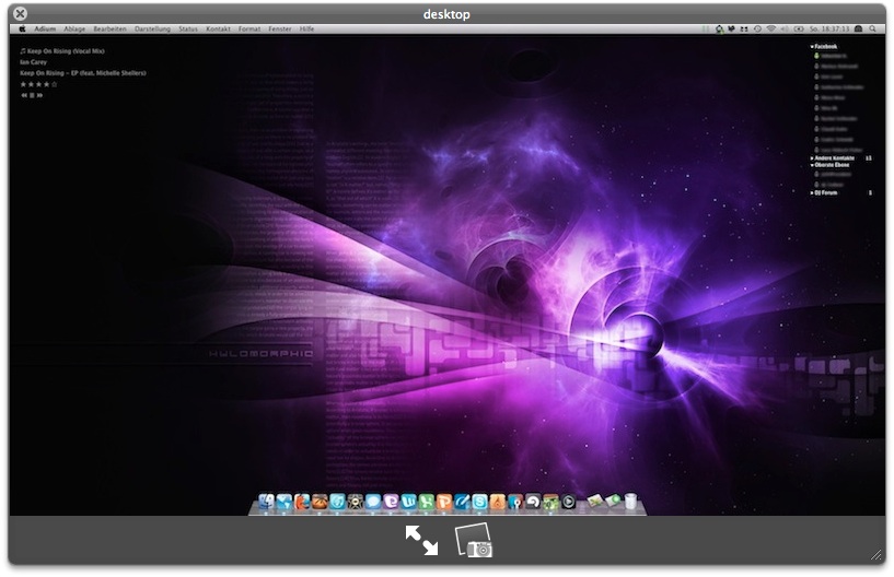 It's pretty much a combination of idea's and a wallpaper between the 2 links below. I loved the wallpaper from the first one but also liked the "room" style of the second, but thought it was a little too "busy". And I'm too inept at this sort of thing to implement some of the ideas there myself! The iTunes control on the TV actually works in sync with iTunes courtesy of Bowtie.