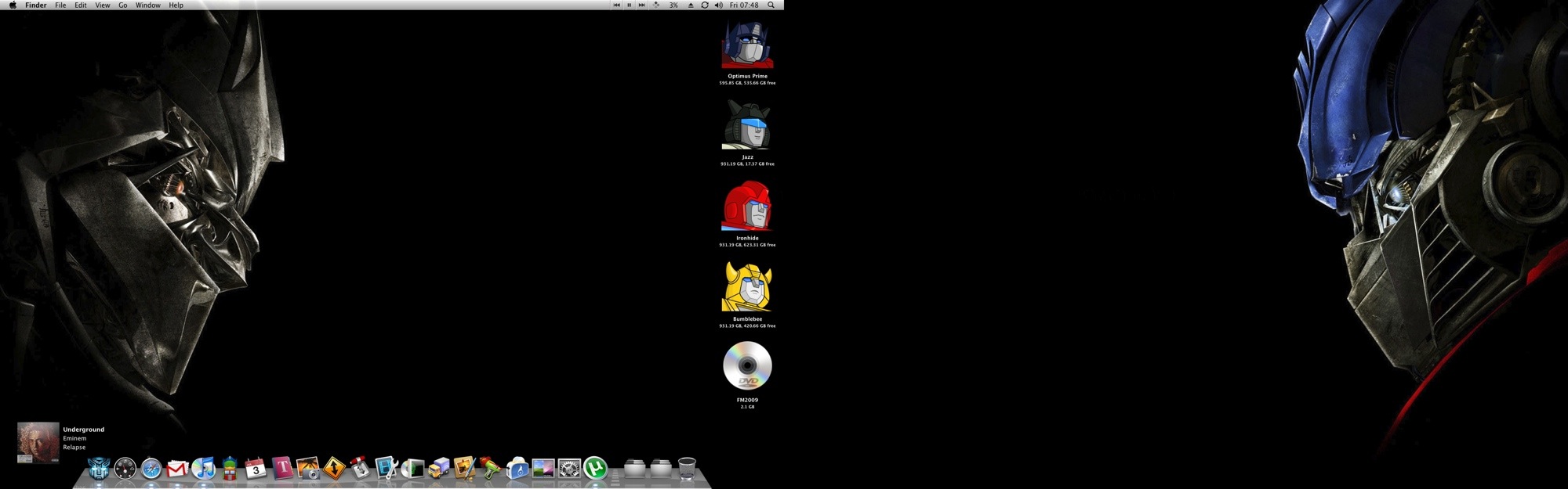 Bowtie ONE theme, and a bunch of geektool scripts for date, time, weather, twitter, worldclock, uptime and free HD space.