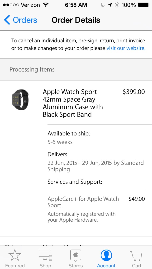 I ordered 22 minutes after pre-orders began and I have 29 May- 8 June or something like that. I'm obviously very disappointed, but I'm mostly disappointed in myself that I slept through my alarm. Apple can only make so many watches. Should Apple have waited until June/July with stock sitting in the warehouse to allow for everyone to get one immediately? It's a delicate balance, because holding inventory costs. Plus Apple had no way of knowing the initial demand. Plus it's always better to release a little early. Constrained stock looks better than way too much stock.